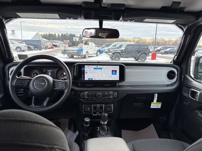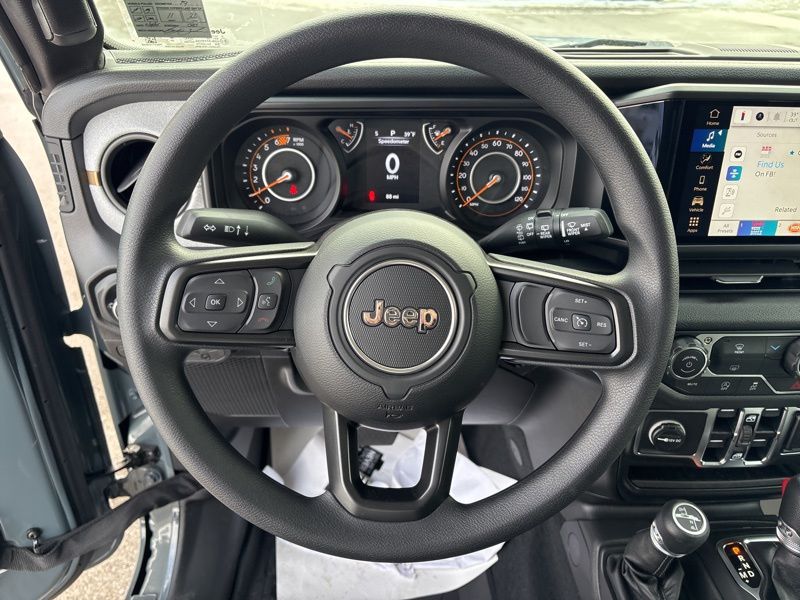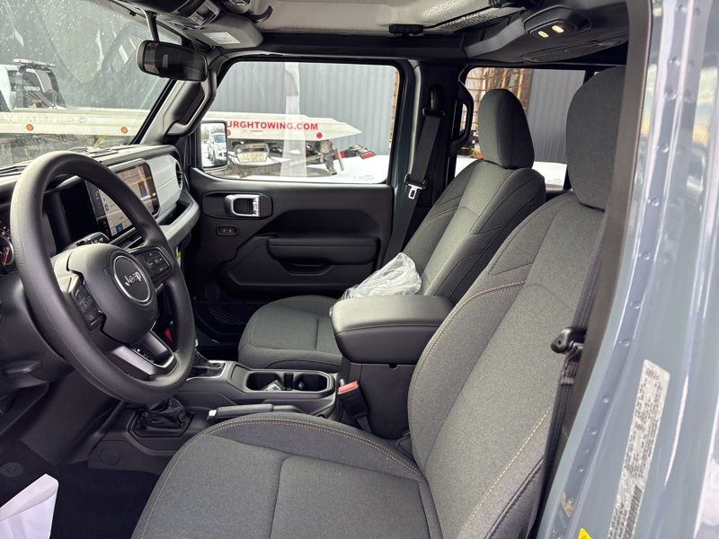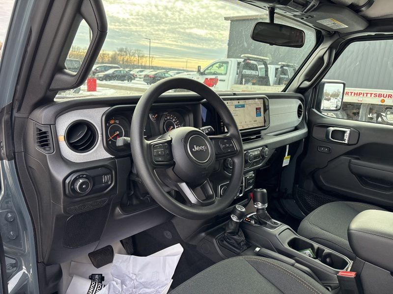 Quick Order Package 22B Sport, 12.3" Touchscreen Display, 3.45 Overall Top Gear Ratio, 4-Wheel Disc Brakes, 4G LTE Wi-Fi Hot Spot, 8 Speakers, ABS brakes, Air Conditioning, AM/FM radio: SiriusXM with 360L, Apple CarPlay, Apple CarPlay/Android Auto, Aux Battery, Black 3-Piece Hard Top, Brake assist, Compass, Connectivity - US/Canada, Deep Tint Sunscreen Windows, Delay-off headlights, Driver door bin, Driver vanity mirror, Dual front impact airbags, Dual front side impact airbags, Electronic Stability Control, For More Info, Call 800-643-2112, Freedom Panel Storage Bag, Front anti-roll bar, Front Bucket Seats, Front Center Armrest w/Storage, Front fog lights, Front reading lights, Google Android Auto, Illuminated entry, Integrated Center Stack Radio, Integrated roll-over protection, Low tire pressure warning, MOPAR All-Weather Floor Mats, No Soft Top, Non-Lock Fuel Cap Without Discriminator, Normal Duty Suspension, Occupant sensing airbag, Outside temperature display, Overhead airbag, Panic alarm, ParkView Rear Back-Up Camera, Passenger door bin, Passenger vanity mirror, Power steering, Power windows, Radio data system, Radio: Uconnect 5 with 12.3" Display, Rear anti-roll bar, Rear reading lights, Rear Window Defroster, Rear Window Wiper/Washer, Remote keyless entry, SiriusXM Radio Service, SiriusXM with 360L, Speed control, Split folding rear seat, Steering wheel mounted audio controls, Stop-Start Dual Battery System, Tachometer, Telescoping steering wheel, Tilt steering wheel, Traction control, Trip computer, Variably intermittent wipers, and Wheels: 17" x 7.5" Black Steel Styled. Anvil Clear Coat 2026 Jeep Wrangler Sport 4WD 8-Speed Automatic 2.0L I4 DOHC