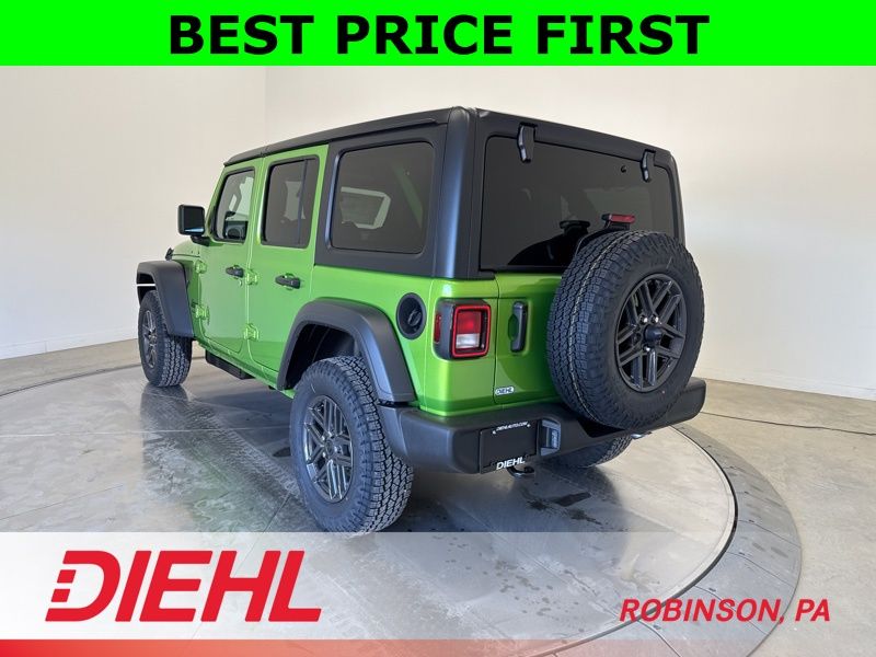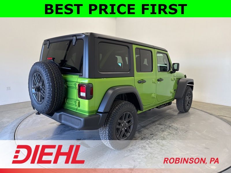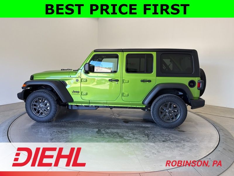 2026 Jeep Wrangler Sport S 4 Door 4x4 in Mojito Clearcoat with black three piece hard top, 12.3 inch touchscreen and legendary Trail Rated Jeep capability.