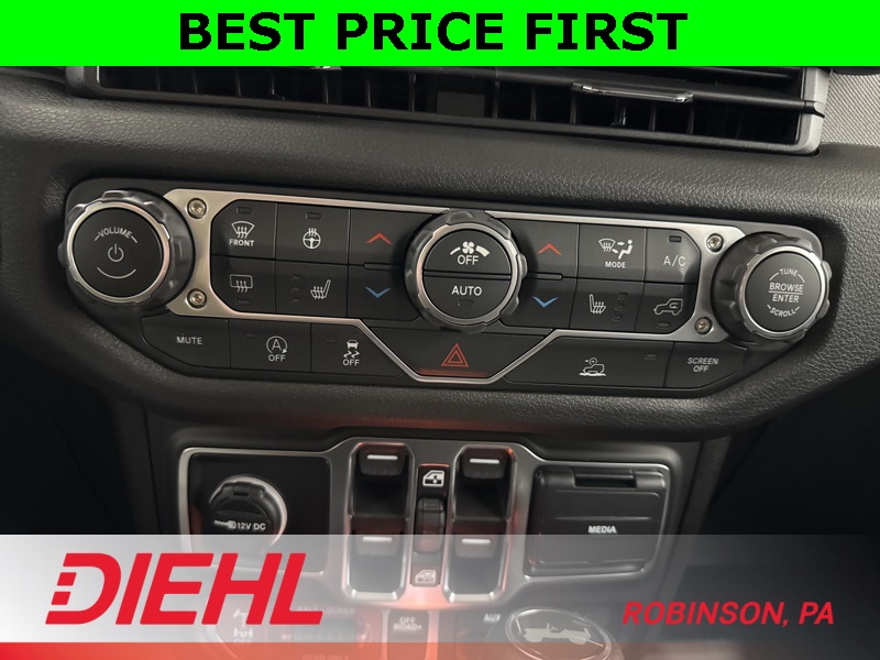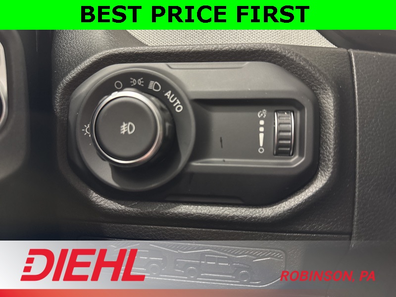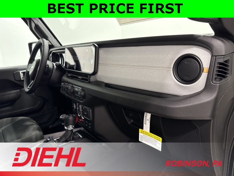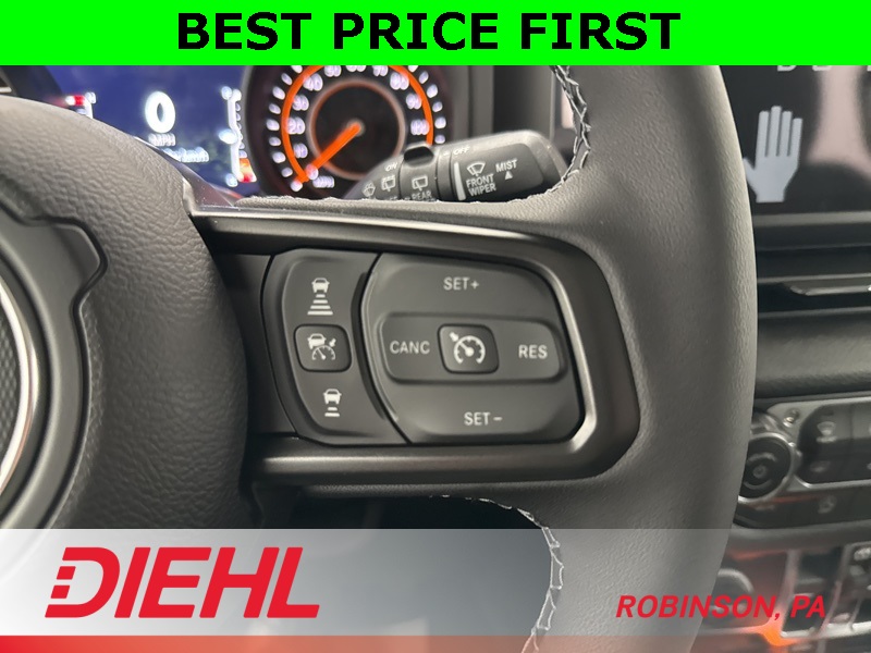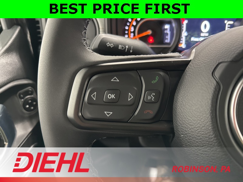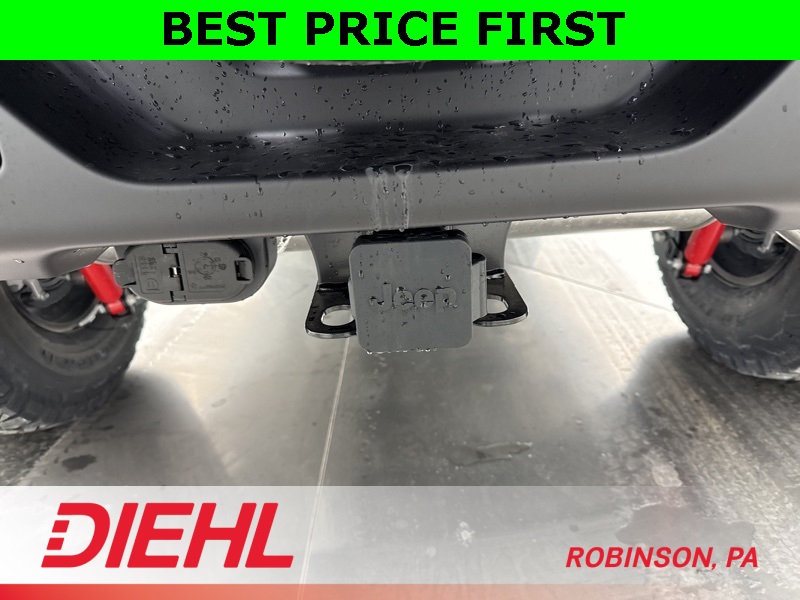 Inside, you’ll find rugged capability wrapped in creature comforts. The 12.3-inch Uconnect 5 touchscreen with Apple CarPlay, Android Auto, and SiriusXM keeps you connected on the move. The upgraded 7-inch cluster display, automatic temperature control, remote start, and power windows make every ride as convenient as it is capable. Whether you’re carving up mud trails or crawling through city traffic, this cabin keeps you in command.