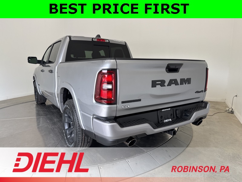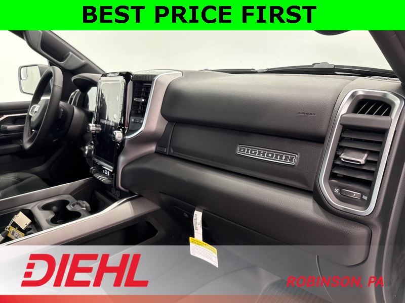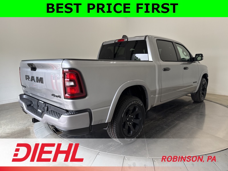 If trucks could flex, this 2026 Ram 1500 Big Horn Crew Cab 4x4 would be on a billboard doing it. Coated in eye-catching Billet Silver Metallic and rolling strong on 20-inch aluminum wheels from the Night Edition package, this full-size pickup is ready to turn job sites into catwalks. But don’t let the good looks fool you—under the hood lives a 5.7L HEMI V8 with eTorque that delivers brute strength with a touch of hybrid efficiency. It’s like having a lumberjack with a master’s degree in engineering.Inside, things get downright luxurious. Deluxe bucket seats, a power-adjustable driver’s throne, and the massive 12-inch Uconnect touchscreen make this cabin feel more like a mobile command center. Add dual-zone climate control, a sliding rear window, and remote start, and suddenly your truck has more convenience than your living room.The Level 2 Equipment Group makes your life easier and your drive smarter, with perks like heated front seats, a heated steering wheel, and the kind of tech that makes traffic almost enjoyable. You’re surrounded by smart safety with full-speed forward collision warning, adaptive cruise control with stop and go, blind-spot monitoring, and more. Parking assist and a backup camera mean tight spots are no match.Need to haul or tow? This Big Horn comes armed with a Class IV hitch, trailer brake controller, and deployable Mopar bed step. The 3.21 axle ratio gives you a balance of power and efficiency, while the 26-gallon fuel tank ensures fewer stops between adventures.Whether you're climbing mountains, crushing workdays, or just making an entrance at the local drive-thru, this 2026 Ram 1500 Big Horn Crew Cab is built to make every mile memorable. Come see it today at Diehl of Robinson. But hurry... trucks like this don’t sit still for long. Schedule your test drive now and let this HEMI-powered head-turner speak for itself. Price includes: $3500 - 2026 National Retail Consumer Cash . Exp. 11/03/2025