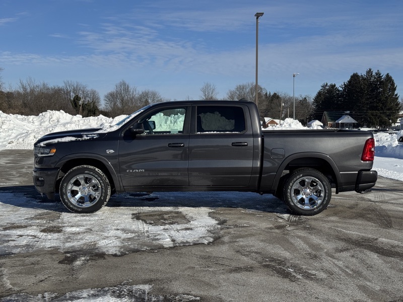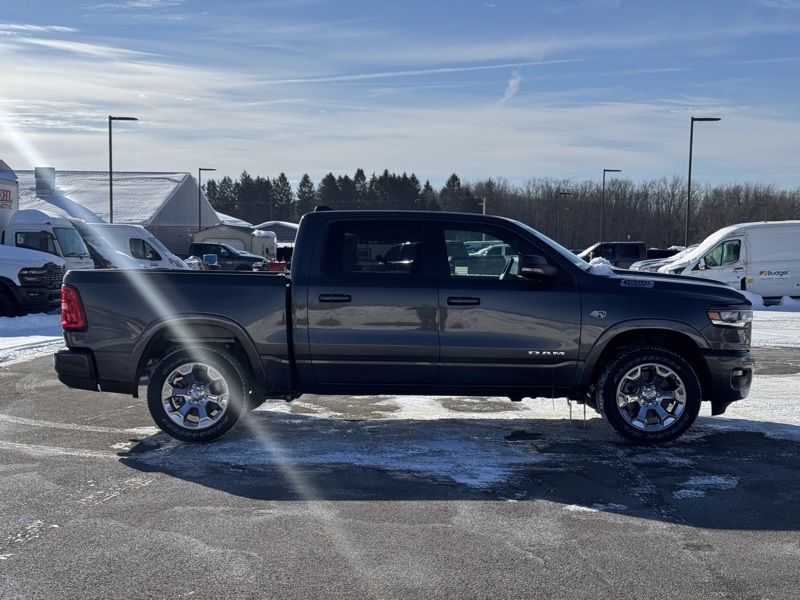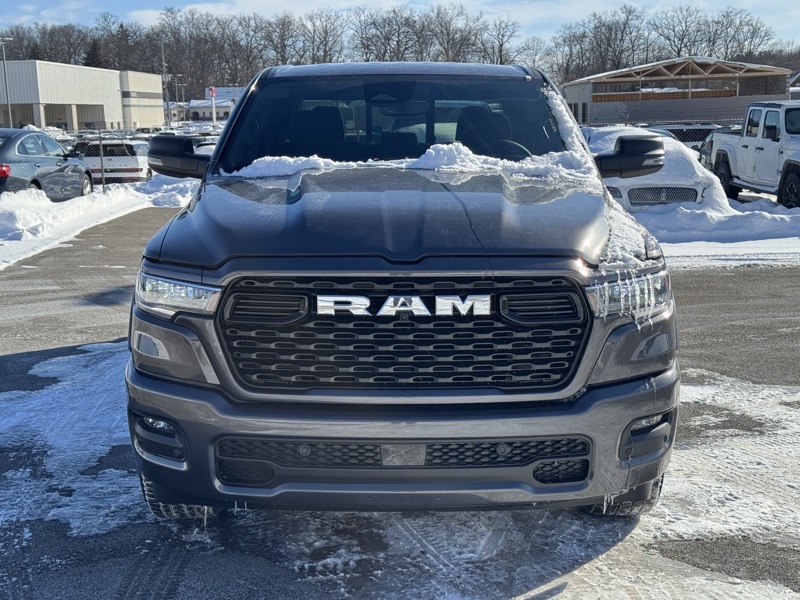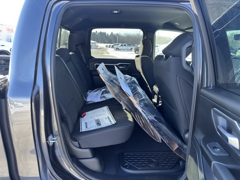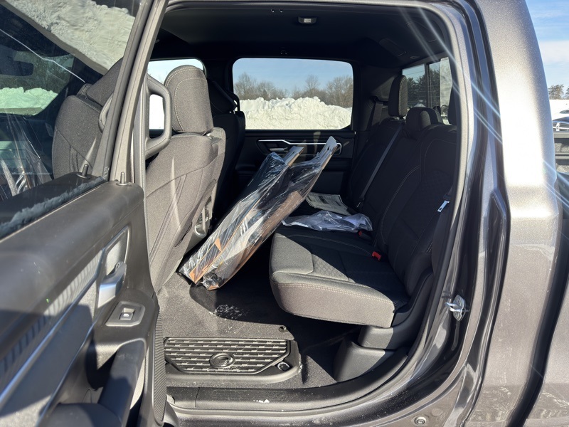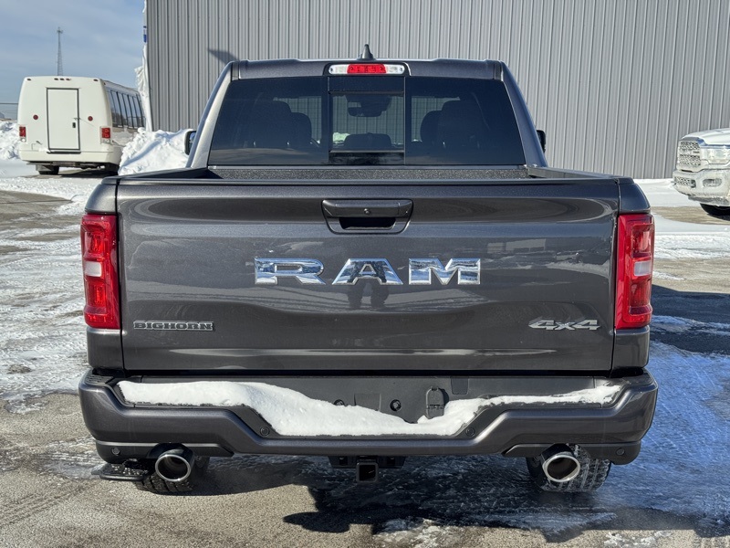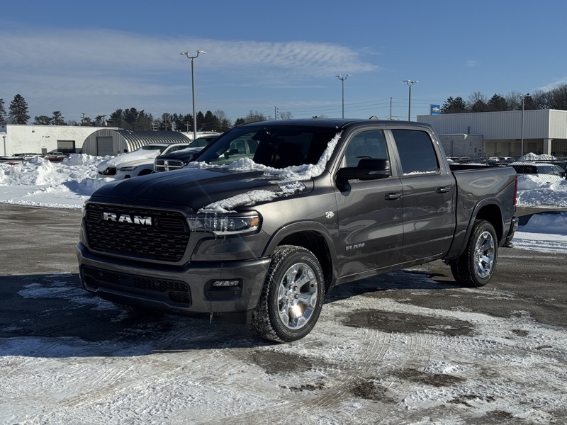 Bed Utility Group (Exterior 115V AC Outlet, MOPAR 4 Adjustable Cargo Tie-Down Hooks, MOPAR Spray in Bedliner, and Pick-Up Box Lighting), Big Horn Level 2 Equipment Group (115V Auxiliary Power Outlet, 115V Auxiliary Rear Power Outlet, 12" Touchscreen Display, 2nd Row in Floor Storage Bins, 3 Rear Seat Head Restraints, 4 Way Front Headrests, 400W Inverter, 4G LTE Wi-Fi Hot Spot, 9 Amplified Speakers with Subwoofer, Air Conditioning ATC with Dual Zone Control, Apple CarPlay, Auto Power-Folding Mirrors, Auto-Dimming Exterior Driver Mirror, Auto-Dimming Rear-View Mirror, Black Exterior Mirrors, Black Premium Power Mirrors, Body Color Fender Flares, Bucket Seats, Center Console Parts Module, Cluster 7.0" TFT Color Display, Configurable Drive Mode, Connected Travel and Traffic Services, Connectivity - US/Canada, Convex Wide-Angle Exterior Mirror Insert, Deluxe Cloth Bucket Seats, Disassociated Touchscreen Display, Exterior Mirrors Courtesy Lamps, Exterior Mirrors with Heating Element, Exterior Mirrors with Supplemental Signals, Front Seat Back Map Pockets, Full Length Floor Console, Global Telematics Box Module, Glove Box Lamp, Google Android Auto, GPS Antenna Input, GPS Navigation, HD Radio, Heated Front Seats, Heated Steering Wheel, Integrated Center Stack Radio, Integrated Voice Command with Bluetooth, Leather Wrapped Steering Wheel, LED Dome Lamp with on/Off Switch, LED Footwell Lighting, Manual Adjust 4-Way Front Passenger Seat, Media Hub with 2 Charge Only USBs, Overhead LED Lamps, Power 2-Way Driver Lumbar Adjust, Power Adjust 8-Way Driver Seat, Power Adjustable Pedals, Premium Overhead Console, Radio: Uconnect 5 Navigation with 12.0" Display, Rear 60/40 Folding Seat, Rear Center Armrest, Rear Power Sliding Window, Rear Window Defroster, Remote Tailgate Release, Security Alarm, SiriusXM Radio Service, SiriusXM with 360L, Steering Wheel Mounted Audio Controls, Sun Visors with Illuminated Vanity Mirrors, Universal Garage Door Opener, and USB Host Flip), Quick Order Package 27Z Big Horn, Sport Appearance Package (Black Interior Accents, Body Color Door Handles, Body Color Front Bumper, Body Color Rear Bumper with Step Pads, Body Color Tailgate Handle, Grille Surround 1 Body Color Texture 1 Black, and RAM Grille Badge - Chrome), 4-Wheel Disc Brakes, 48V Belt Starter Generator, 6 Speakers, ABS brakes, Air Conditioning, Alloy wheels, AM/FM radio, Apple CarPlay/Android Auto, Auto High-beam Headlights, Brake assist, Bumpers: chrome, Cloth Bucket Seats, Compass, Delay-off headlights, Driver door bin, Dual front impact airbags, Dual front side impact airbags, Electronic Stability Control, Front anti-roll bar, Front Bucket Seats, Front Center Armrest w/Storage, Front fog lights, Front reading lights, Front wheel independent suspension, Fully automatic headlights, Heated door mirrors, Illuminated entry, Low tire pressure warning, Manual Adjust 4-Way Driver Seat, Manual Folding Exterior Mirrors, MOPAR Front and Rear Rubber Floor Mats, Occupant sensing airbag, Outside temperature display, Overhead airbag, Overhead console, Panic alarm, ParkView Rear Back-Up Camera, Passenger door bin, Passenger vanity mirror, Power door mirrors, Power steering, Power windows, Radio data system, Radio: Uconnect 5 W with 8.4" Display, Rear anti-roll bar, Rear step bumper, Remote keyless entry, Speed control, Supplier Part Tracking (J-1), Tachometer, Telescoping steering wheel, Tilt steering wheel, Traction control, Trailer Brake Control, Trip computer, Variably intermittent wipers, and Voltmeter. Granite Crystal Metallic Clearcoat 2026 Ram 1500 Big Horn/Lone Star 4WD 8-Speed Automatic HEMI 5.7L V8 Multi Displacement VVT eTorque