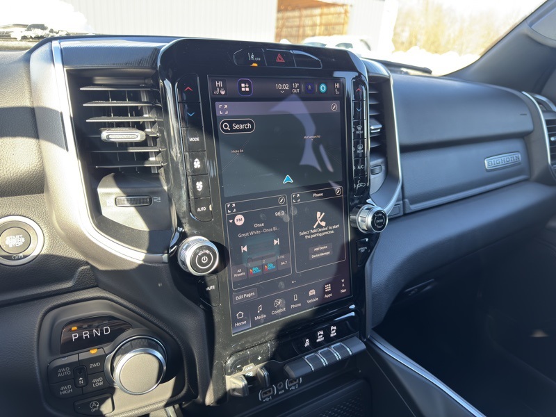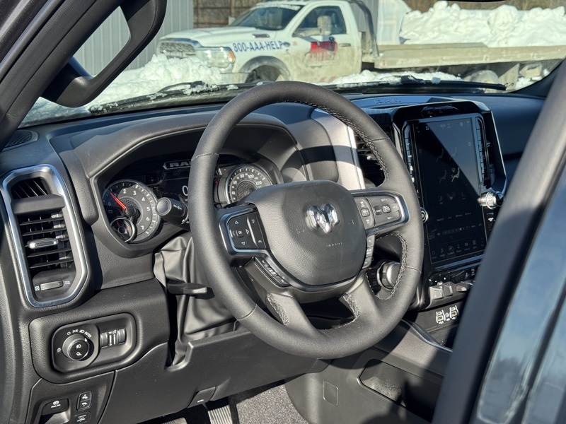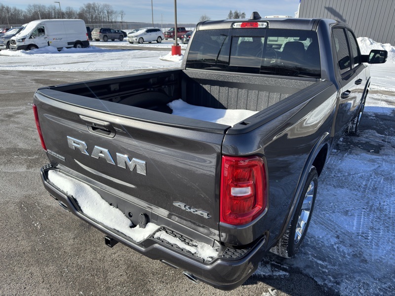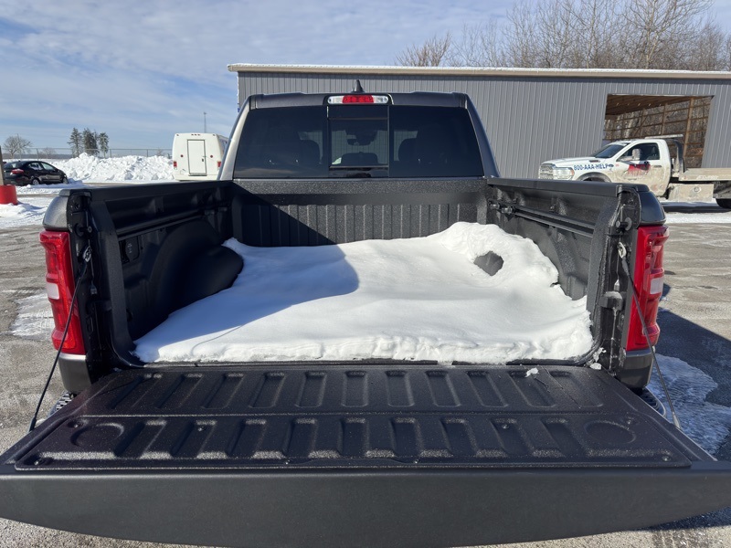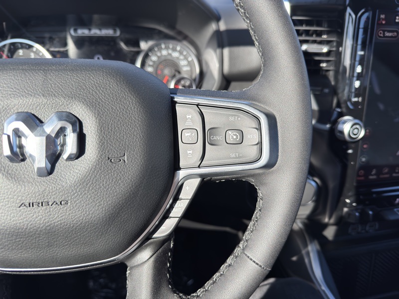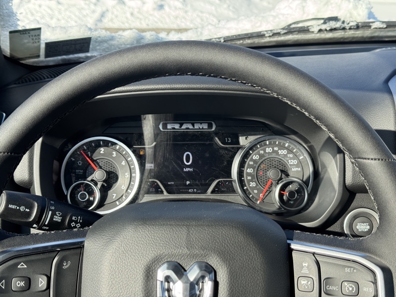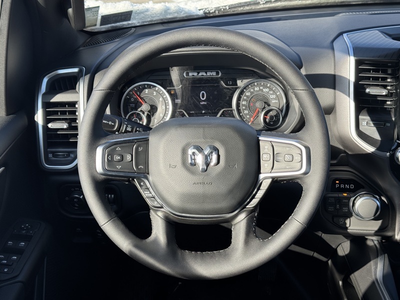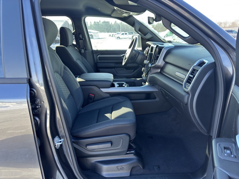 Bed Utility Group (Exterior 115V AC Outlet, MOPAR 4 Adjustable Cargo Tie-Down Hooks, MOPAR Spray in Bedliner, and Pick-Up Box Lighting), Big Horn Level 2 Equipment Group (115V Auxiliary Power Outlet, 115V Auxiliary Rear Power Outlet, 12" Touchscreen Display, 2nd Row in Floor Storage Bins, 3 Rear Seat Head Restraints, 4 Way Front Headrests, 400W Inverter, 4G LTE Wi-Fi Hot Spot, 9 Amplified Speakers with Subwoofer, Air Conditioning ATC with Dual Zone Control, Apple CarPlay, Auto Power-Folding Mirrors, Auto-Dimming Exterior Driver Mirror, Auto-Dimming Rear-View Mirror, Black Exterior Mirrors, Black Premium Power Mirrors, Body Color Fender Flares, Bucket Seats, Center Console Parts Module, Cluster 7.0" TFT Color Display, Configurable Drive Mode, Connected Travel and Traffic Services, Connectivity - US/Canada, Convex Wide-Angle Exterior Mirror Insert, Deluxe Cloth Bucket Seats, Disassociated Touchscreen Display, Exterior Mirrors Courtesy Lamps, Exterior Mirrors with Heating Element, Exterior Mirrors with Supplemental Signals, Front Seat Back Map Pockets, Full Length Floor Console, Global Telematics Box Module, Glove Box Lamp, Google Android Auto, GPS Antenna Input, GPS Navigation, HD Radio, Heated Front Seats, Heated Steering Wheel, Integrated Center Stack Radio, Integrated Voice Command with Bluetooth, Leather Wrapped Steering Wheel, LED Dome Lamp with on/Off Switch, LED Footwell Lighting, Manual Adjust 4-Way Front Passenger Seat, Media Hub with 2 Charge Only USBs, Overhead LED Lamps, Power 2-Way Driver Lumbar Adjust, Power Adjust 8-Way Driver Seat, Power Adjustable Pedals, Premium Overhead Console, Radio: Uconnect 5 Navigation with 12.0" Display, Rear 60/40 Folding Seat, Rear Center Armrest, Rear Power Sliding Window, Rear Window Defroster, Remote Tailgate Release, Security Alarm, SiriusXM Radio Service, SiriusXM with 360L, Steering Wheel Mounted Audio Controls, Sun Visors with Illuminated Vanity Mirrors, Universal Garage Door Opener, and USB Host Flip), Quick Order Package 27Z Big Horn, Sport Appearance Package (Black Interior Accents, Body Color Door Handles, Body Color Front Bumper, Body Color Rear Bumper with Step Pads, Body Color Tailgate Handle, Grille Surround 1 Body Color Texture 1 Black, and RAM Grille Badge - Chrome), 4-Wheel Disc Brakes, 48V Belt Starter Generator, 6 Speakers, ABS brakes, Air Conditioning, Alloy wheels, AM/FM radio, Apple CarPlay/Android Auto, Auto High-beam Headlights, Brake assist, Bumpers: chrome, Cloth Bucket Seats, Compass, Delay-off headlights, Driver door bin, Dual front impact airbags, Dual front side impact airbags, Electronic Stability Control, Front anti-roll bar, Front Bucket Seats, Front Center Armrest w/Storage, Front fog lights, Front reading lights, Front wheel independent suspension, Fully automatic headlights, Heated door mirrors, Illuminated entry, Low tire pressure warning, Manual Adjust 4-Way Driver Seat, Manual Folding Exterior Mirrors, MOPAR Front and Rear Rubber Floor Mats, Occupant sensing airbag, Outside temperature display, Overhead airbag, Overhead console, Panic alarm, ParkView Rear Back-Up Camera, Passenger door bin, Passenger vanity mirror, Power door mirrors, Power steering, Power windows, Radio data system, Radio: Uconnect 5 W with 8.4" Display, Rear anti-roll bar, Rear step bumper, Remote keyless entry, Speed control, Supplier Part Tracking (J-1), Tachometer, Telescoping steering wheel, Tilt steering wheel, Traction control, Trailer Brake Control, Trip computer, Variably intermittent wipers, and Voltmeter. Granite Crystal Metallic Clearcoat 2026 Ram 1500 Big Horn/Lone Star 4WD 8-Speed Automatic HEMI 5.7L V8 Multi Displacement VVT eTorque