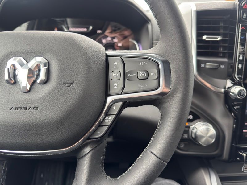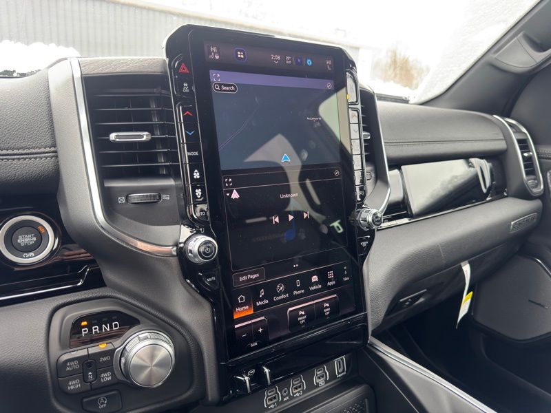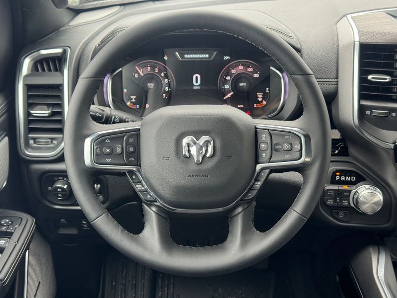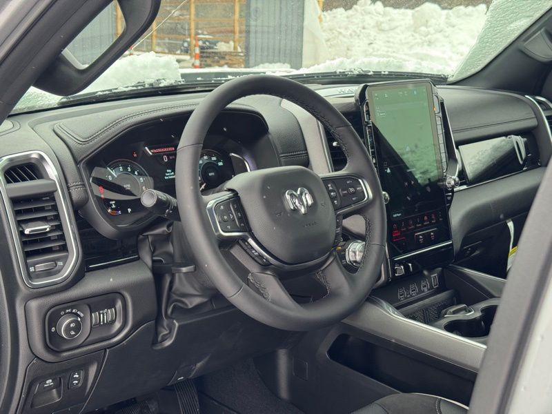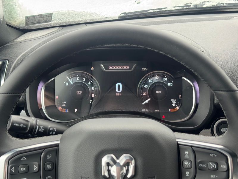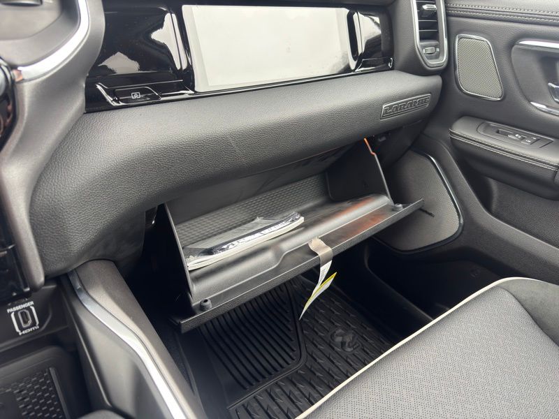 The Laramie Level 2 Equipment Group transforms the cabin with a massive 14.4 inch Uconnect 5 navigation touchscreen, a 12 inch digital driver display, and a front passenger interactive display. You also get Harman Kardon 19 speaker premium audio, SiriusXM with 360L, 4G LTE Wi Fi hotspot capability, rain sensitive windshield wipers, and a power tailgate. Technology and connectivity are front and center in this build.