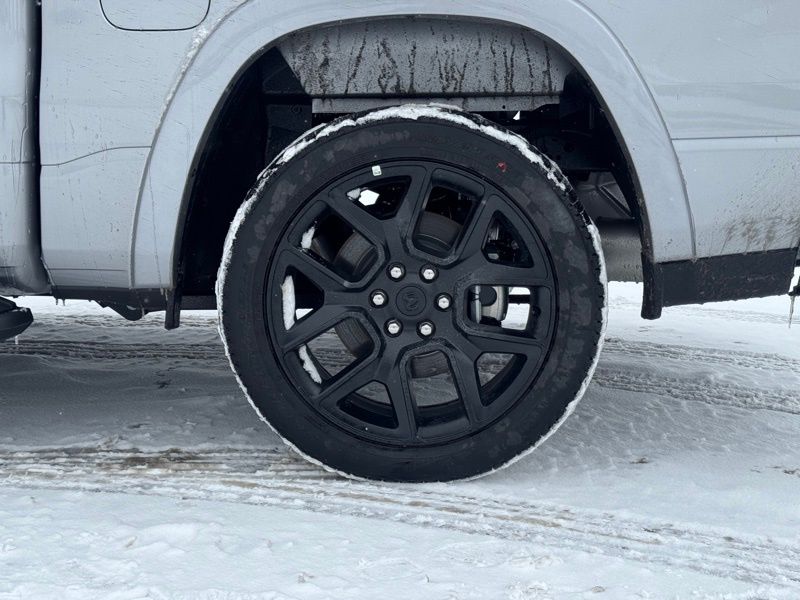 The Night Edition gives this Laramie a darker, more aggressive presence with black exterior truck badging, black headlamp and tail lamp bezels, black mirror caps, black RAM grille badge, black dual exhaust tips, sport performance hood, and 22 inch forged aluminum wheels wrapped in Pirelli tires. Body color bumpers and accent color handles complete the look.