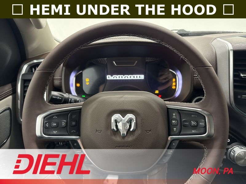 14.4" Touchscreen Display, 4G LTE Wi-Fi Hot Spot, Bed Utility Group, Cluster 12" TFT Color Display, Connected Travel and Traffic Services, Connectivity - US/Canada, Exterior 115V AC Outlet, Front Passenger Interactive Display, GPS Navigation, Harman/Kardon 19 Speaker Premium Sound, Integrated Center Stack Radio, Integrated Voice Command with Bluetooth, Laramie Level 2 Equipment Group, MOPAR 4 Adjustable Cargo Tie-Down Hooks, MOPAR Spray in Bedliner, Navigation System, Power Tailgate, Quick Order Package 27H Laramie, Radio: Uconnect 5 Nav with 14.4" Display, Rain Sensitive Windshield Wipers, SiriusXM Radio Service, SiriusXM with 360L, USB Host Flip.