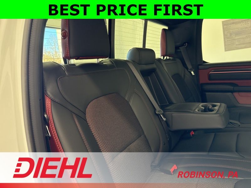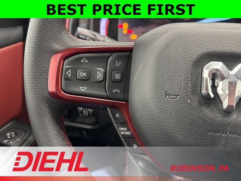 Step inside the spacious Crew Cab and you will find a cabin that balances rugged attitude with modern comfort. Heated front seats, a heated steering wheel, and dual zone automatic climate control make every drive comfortable no matter the season. The advanced Uconnect 5 system with a massive 12 inch touchscreen display gives you Apple CarPlay, Android Auto, SiriusXM connectivity, and Ram Connect services all within easy reach.