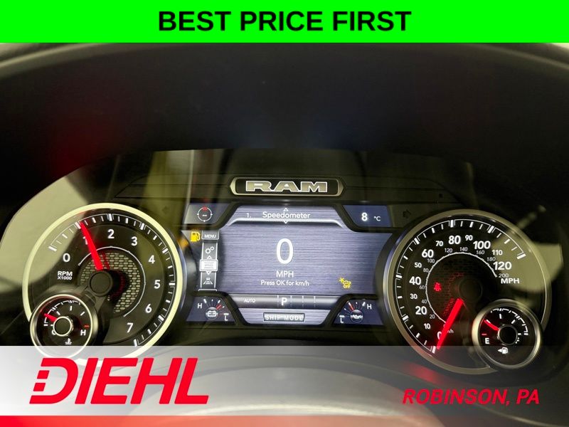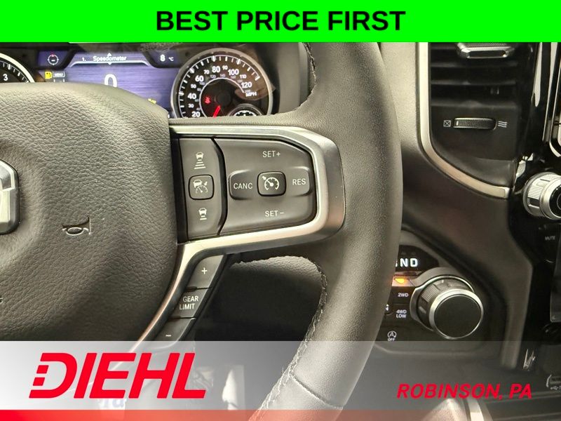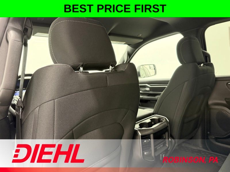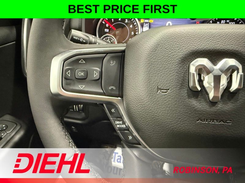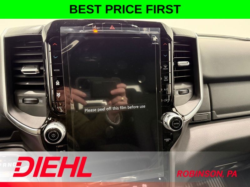 Inside, this Crew Cab is all about space and smart tech. The massive 12 inch Uconnect 5 touchscreen is the centerpiece, giving you Apple CarPlay, Android Auto, and easy access to everything you need. The 7 inch digital cluster keeps your driving info front and center, while features like power adjustable pedals, remote start, and a power sliding rear window make everyday use feel effortless.