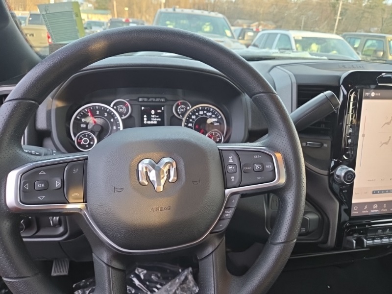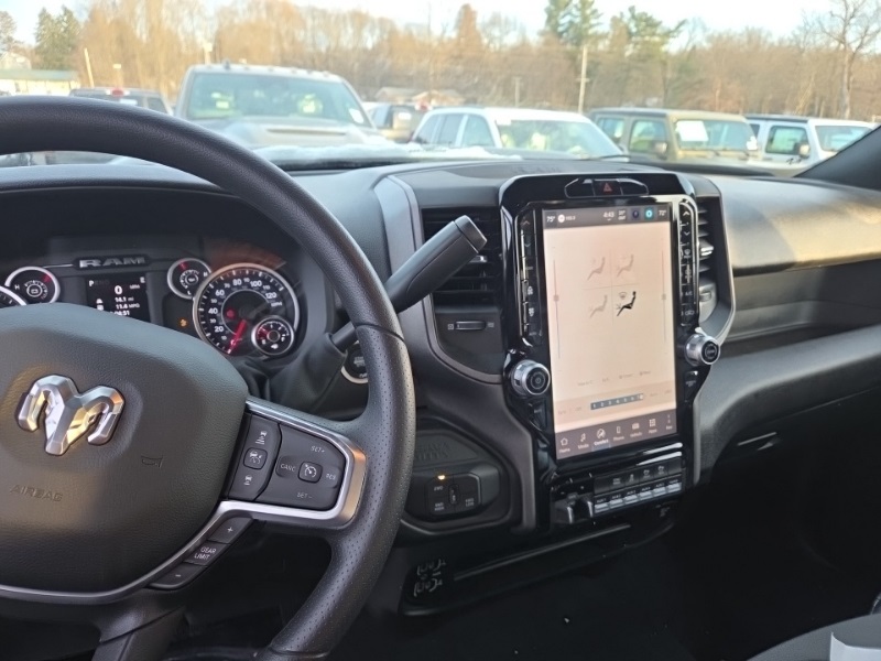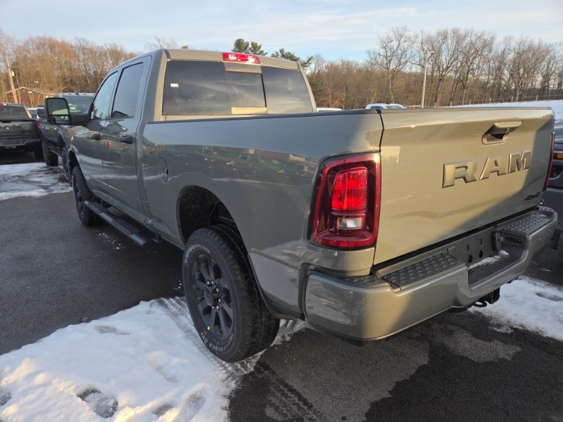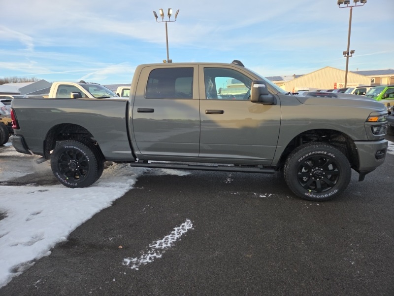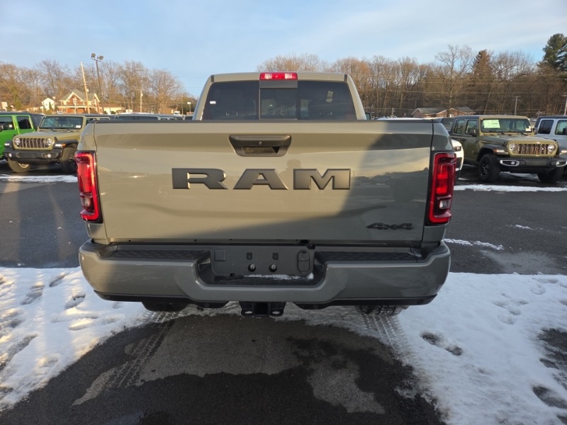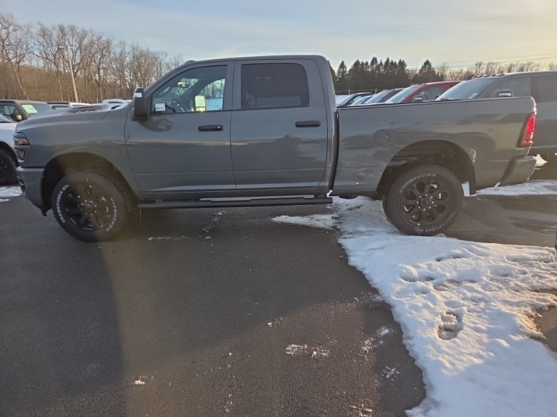 Bed Convenience Group (LED Bed Lighting and MOPAR Spray in Bedliner), Commercial Features Package, Quick Order Package 2UC Black Express (2 Way Rear Headrest Seat, 4 Way Front Headrests, 40/20/40 Split Bench Seat, Auto Power-Folding Mirrors, Black Exterior Mirrors, Black Wheel Center Hub, Body Color Grille-Surround, Carpet Floor Covering, Cloth 40/20/40 Bench Seat, Exterior Mirrors Courtesy Lamps, Exterior Mirrors with Heating Element, Exterior Mirrors with Supplemental Signals, Forward and Reverse Utility Lights, Front and Rear Floor Mats, Front Armrest with Cupholders, Manual Adjust 4-Way Driver Seat, Manual Adjust 4-Way Front Passenger Seat, Mirror Running Lights, Mopar Black Tubular Side Steps, Painted Front Bumper, Painted Rear Bumper, ParkSense Front/Rear Park Assist System, Power Adjust Mirrors, Power Heated Folding Telescopic Mirrors, Power Telescoping Mirrors, Power-Adjustable Convex Aux Mirrors, Rear Folding Seat, Remote USB Port - Charge Only, Sport Performance Hood, Storage Tray, and Wheels: 20" x 8.0" Black Painted Aluminum), Tradesman Level 1 Equipment Group (115-Volt Auxiliary Front Power Outlet, 12" Touchscreen Display, 400W Inverter, 4G LTE Wi-Fi Hot Spot, Air Conditioning ATC with Dual Zone Control, Alexa Built-in, Apple CarPlay, Auto-Dimming Rear-View Mirror, Connected Travel and Traffic Services, Connectivity - US/Canada, Disassociated Touchscreen Display, Emergency Vehicle Alert System (EVAS), Exterior 115V AC Outlet, For Details, Visit DriveUconnect.com, For More Info, Call 800-643-2112, Global Telematics Box Module, Google Android Auto, GPS Antenna Input, GPS Navigation, HD Radio, Integrated Voice Command with Bluetooth, Off-Road Info Pages, Radio: Uconnect 5 Navigation with 12.0" Display, Rear Power Sliding Window, Selectable Tire Fill Alert, SiriusXM Radio Service, SiriusXM with 360L, Tinted Acoustic Windshield Glass, and Trailer Tow Pages), 3.73 Axle Ratio, 4-Wheel Disc Brakes, 5th Wheel/Gooseneck Towing Prep Group, 6 Speakers, ABS brakes, Air Conditioning, AM/FM radio: SiriusXM, Anti-Spin Differential Rear Axle, Apple CarPlay/Android Auto, Brake assist, Clearance Lamps, Compass, Dash Pass Thru Wire Circuits, Delay-off headlights, Driver door bin, Dual front impact airbags, Dual front side impact airbags, Electronic Stability Control, Front anti-roll bar, Front Center Armrest w/Storage, Front fog lights, Front reading lights, Fully automatic headlights, Illuminated entry, Instrument Panel Mounted Auxiliary Switches, Low tire pressure warning, Manual Folding Exterior Mirrors, Occupant sensing airbag, Outside temperature display, Overhead airbag, Overhead console, Panic alarm, ParkView Rear Back-Up Camera, Passenger door bin, Passenger vanity mirror, Power steering, Power windows, Radio data system, Radio: Uconnect 5 with 8.4" Display, Rear anti-roll bar, Rear step bumper, Rear Wheelhouse Liners, Rear window defroster, Remote keyless entry, Speed control, Tachometer, Tilt steering wheel, Traction control, Variably intermittent wipers, Voltmeter, and Wheels: 17" x 7.5" Black Steel StyleD. Ceramic Gray Clearcoat 2026 Ram 2500 Tradesman commercial 4WD 8-Speed Automatic 6.4L V8