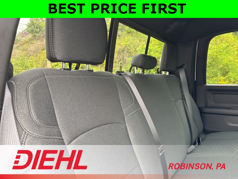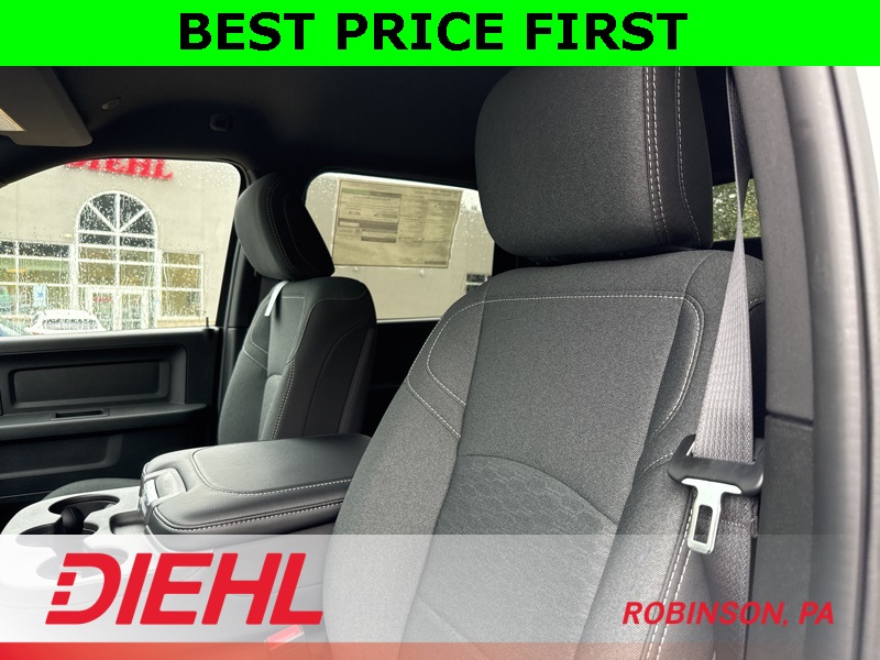 Inside, it’s all about practicality meeting comfort. Durable cloth 40/20/40 bench seating, push-button start, Apple CarPlay, Android Auto, and an 8.4-inch Uconnect touchscreen keep you connected while you get things done. Add in a power accessory delay, 31-gallon fuel tank, and full-size Crew Cab interior, and you’ve got space and stamina that go the distance.