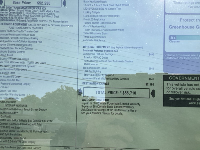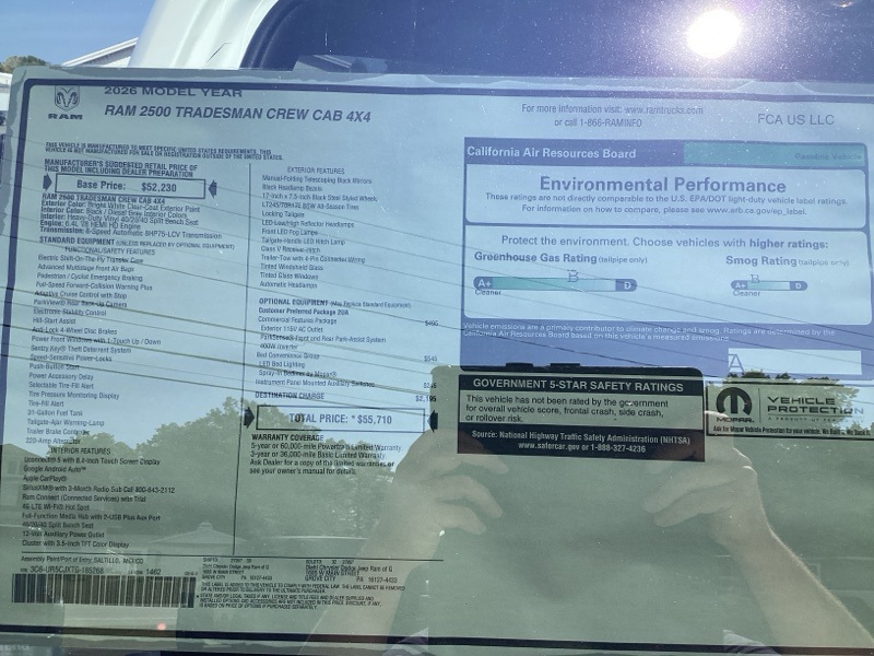 Bright White Clearcoat 2026 2500 Ram Tradesman 4D Crew Cab 4WD 8-Speed Automatic 6.4L V8 Price includes: $1000 - 2026 National Bonus Cash . Exp. 11/03/2025