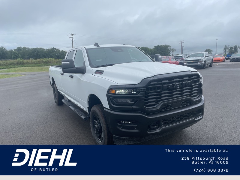 Bed Convenience Group (LED Bed Lighting and MOPAR Spray In Bedliner), Quick Order Package 2UA Tradesman, Tradesman Level 1 Equipment Group (115V Auxiliary Front Power Outlet, 12" Touchscreen Display, 400W Inverter, 4G LTE Wi-Fi Hot Spot, Air Conditioning ATC w/Dual Zone Control, Alexa Built-In, Anti-Spin Differential Rear Axle, Apple CarPlay, Auto-Dimming Rear-View Mirror, Connected Travel & Traffic Services, Connectivity - US/Canada, Disassociated Touchscreen Display, Emergency Vehicle Alert System (EVAS), Exterior 115V AC Outlet, For Details, Visit DriveUconnect.com, For More Info, Call 800-643-2112, Global Telematics Box Module (TBM), Google Android Auto, GPS Antenna Input, GPS Navigation, HD Radio, Integrated Voice Command w/Bluetooth, Off-Road Info Pages, Radio: Uconnect 5 Nav w/12.0" Display, Rear Power Sliding Window, Selectable Tire Fill Alert, SiriusXM Radio Service, SiriusXM w/360L, Tinted Acoustic Windshield Glass, and Trailer Tow Pages), 2 Way Rear Headrest Seat, 3.73 Axle Ratio, 4 Way Front Headrests, 4-Wheel Disc Brakes, 40/20/40 Split Bench Seat, 6 Speakers, ABS brakes, Air Conditioning, AM/FM radio: SiriusXM, Apple CarPlay/Android Auto, Black Exterior Mirrors, Black Wheel Center Hub, Brake assist, Compass, Dash Pass Thru Wire Circuits, Delay-off headlights, Driver door bin, Dual front impact airbags, Dual front side impact airbags, Electronic Stability Control, Front anti-roll bar, Front Armrest w/Cupholders, Front Center Armrest w/Storage, Front fog lights, Front reading lights, Fully automatic headlights, Heavy Duty Vinyl 40/20/40 Split Bench Seat, I/P Mounted Auxiliary Switches, Illuminated entry, Low tire pressure warning, Manual Adjust 4-Way Driver Seat, Manual Adjust 4-Way Front Passenger Seat, Manual Folding Exterior Mirrors, Manual Telescoping Mirrors, Mopar Black Tubular Side Steps, Occupant sensing airbag, Outside temperature display, Overhead airbag, Overhead console, Panic alarm, ParkView Rear Back-Up Camera, Passenger door bin, Passenger vanity mirror, Power steering, Power windows, Radio data system, Radio: Uconnect 5 w/8.4" Display, Rear anti-roll bar, Rear Folding Seat, Rear step bumper, Rear window defroster, Remote keyless entry, Remote USB Port - Charge Only, Speed control, Storage Tray, Tachometer, Tilt steering wheel, Traction control, Variably intermittent wipers, Voltmeter, Wheels: 17" x 7.5" Black Steel Styled, and Wheels: 18" x 8.0" Black Painted SteeL. Bright White Clearcoat 2026 Ram 2500 Tradesman 4WD 8-Speed Automatic 6.4L V8Type your sentence here. Price includes: $1000 - 2026 National Bonus Cash . Exp. 11/03/2025 $500 - Exp. 12/31/2025