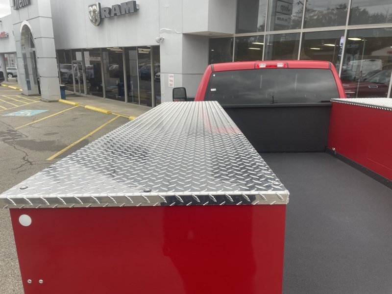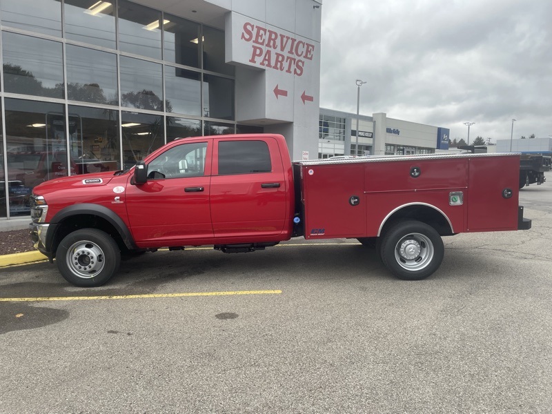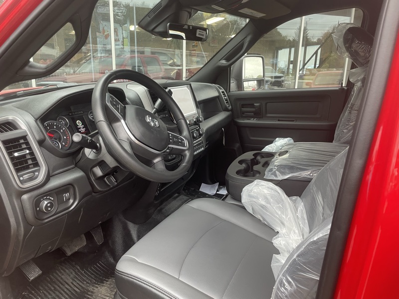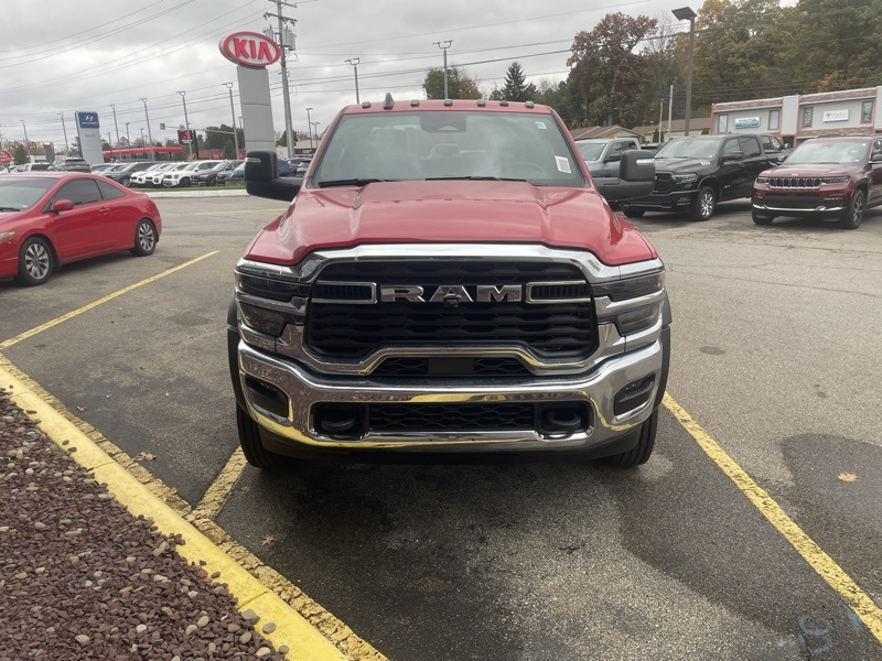 Chrome Appearance Group (19.5" x 6.0" Steel Wheels, Bright Front Bumper, Center Hub, and Chrome Grille Surround), Cold Weather Group (Engine Block Heater and MOPAR Winter Front Grille Cover), Heavy Duty Snow Plow Prep Group (Heavy Duty Front Suspension Group and Upgraded Rear HD Stabilizer Bar), Max Tow Package (Trailer Brake Control and Trailer Light Check), Quick Order Package 25A Tradesman, Tradesman Level 1 Equipment Group (Black Exterior Mirrors, Black Power Heated Fold Telescope Mirrors, Exterior Mirrors Courtesy Lamps, Manual Folding Exterior Mirrors, Mirror Running Lights, Power Adjust Mirrors, Power-Adjustable Convex Aux Mirrors, and Rear Window Defroster), 4-Wheel Disc Brakes, 4.44 Axle Ratio, 40/20/40 Split Bench Seat, 4G LTE Wi-Fi Hot Spot, 6 Speakers, ABS brakes, Air Conditioning, AM/FM radio: SiriusXM, Apple CarPlay, Apple CarPlay/Android Auto, Compass, Connectivity - US/Canada, Delay-off headlights, Driver door bin, Dual front impact airbags, Dual rear wheels, Electronic Stability Control, Emergency communication system: RAM Connect, For Details, Visit DriveUconnect.com, Front anti-roll bar, Front Center Armrest w/Storage, Front fog lights, Front License Plate Bracket, Front reading lights, Fully automatic headlights, Google Android Auto, GPS Antenna Input, Manual Adjust 4-Way Driver Seat, Manual Adjust 4-Way Front Passenger Seat, Occupant sensing airbag, Outside temperature display, Overhead console, Panic alarm, ParkView Rear Back-Up Camera, Passenger door bin, Passenger vanity mirror, Power steering, Power Take-Off Right/Left, Power windows, Radio data system, Rear anti-roll bar, Rear Folding Seat, Rear reading lights, Remote keyless entry, Remote USB Port - Charge Only, Speed control, Tachometer, Tilt steering wheel, Traction control, Variably intermittent wipers, Voltmeter, and Wheels: 19.5" x 6.0" Black Painted SteeL. Flame Red Clearcoat 2026 Ram 5500HD Tradesman 4WD 8-Speed Automatic Cummins 6.7L I6 Turbodiesel