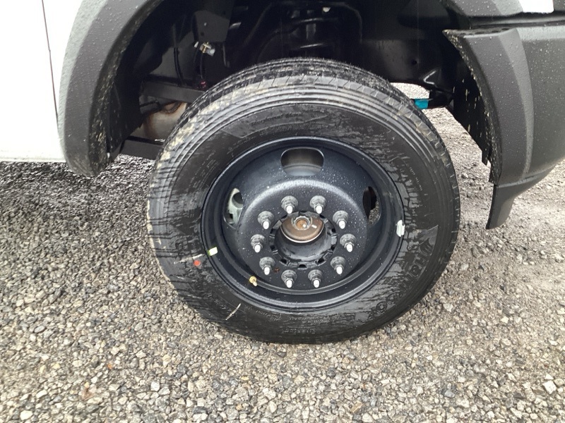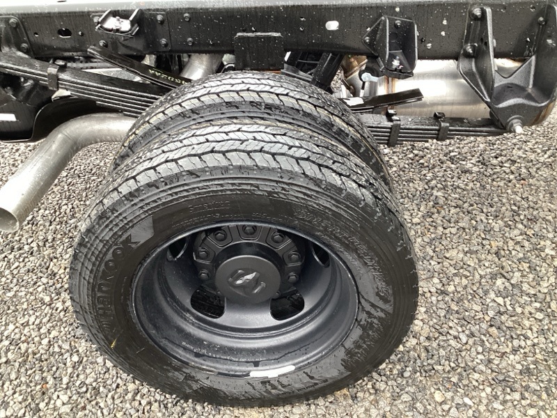 - 19.5 x 6-inch front and dual rear black steel wheels