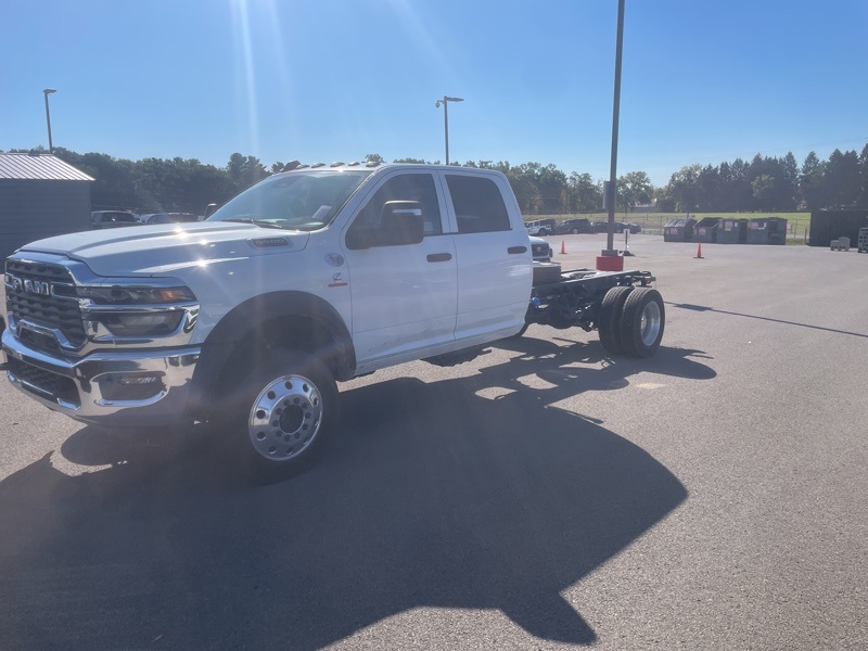 Chrome Appearance Group (19.5" x 6.0" Steel Wheels, Bright Front Bumper, Center Hub, Chrome Grille Surround, and Matte Black Mesh w/Chrome Grille), Cold Weather Group (Engine Block Heater and MOPAR Winter Front Grille Cover), Heavy Duty Snow Plow Prep Group (Upgraded Rear HD Stabilizer Bar), Max Tow Package (Electronic Shift-On-The-Fly Transfer Case, Trailer Brake Control, and Trailer Light Check), On Board Power System - 2.4KW, Quick Order Package 25A Tradesman, Tradesman Level 1 Equipment Group (Black Exterior Mirrors, Black Power Heated Fold Telescope Mirrors, Exterior Mirrors Courtesy Lamps, Exterior Mirrors w/Heating Element, Exterior Mirrors w/Supplemental Signals, Manual Folding Exterior Mirrors, Manual Telescoping Mirrors, Mirror Running Lights, Power Adjust Mirrors, Power-Adjustable Convex Aux Mirrors, and Rear Window Defroster), 4-Wheel Disc Brakes, 4.44 Axle Ratio, 40/20/40 Split Bench Seat, 4G LTE Wi-Fi Hot Spot, 6 Speakers, ABS brakes, Air Conditioning, AM/FM radio: SiriusXM, Apple CarPlay, Apple CarPlay/Android Auto, Cargo & CHMSL Lamp, Compass, Connectivity - US/Canada, Delay-off headlights, Driver door bin, Dual Alternators Rated at 480 Amps, Dual front impact airbags, Dual rear wheels, Electronic Stability Control, Emergency communication system: RAM Connect, For Details, Visit DriveUconnect.com, Front anti-roll bar, Front Armrest w/Cupholders, Front Center Armrest w/Storage, Front fog lights, Front License Plate Bracket, Front reading lights, Fully automatic headlights, Global Telematics Box Module (TBM), Google Android Auto, GPS Antenna Input, Heavy Duty Front Suspension Group, Integrated Voice Command w/Bluetooth, Manual Adjust 4-Way Driver Seat, Manual Adjust 4-Way Front Passenger Seat, Occupant sensing airbag, Outside temperature display, Overhead console, Panic alarm, ParkView Rear Back-Up Camera, Passenger door bin, Passenger vanity mirror, Power steering, Power Take-Off Right/Left, Power windows, Radio data system, Radio: Uconnect 5 w/8.4" Display, Rear anti-roll bar, Rear Folding Seat, Rear reading lights, Remote keyless entry, Remote USB Port - Charge Only, Speed control, Tachometer, Temperature & Compass Gauge, Tilt steering wheel, Traction control, Variably intermittent wipers, Voltmeter, Wheels: 19.5" x 6.0" Black Painted Steel, and Wheels: 19.5" x 6.0" Forged Aluminum PolisheD. Bright White Clearcoat 2026 Ram 5500HD Tradesman 4WD 8-Speed Automatic Cummins 6.7L I6 TurbodieselType your sentence here.