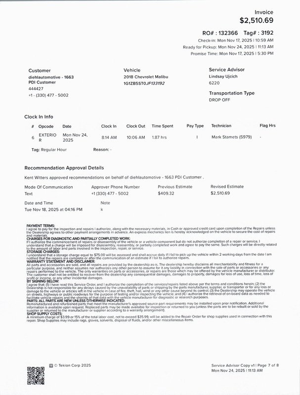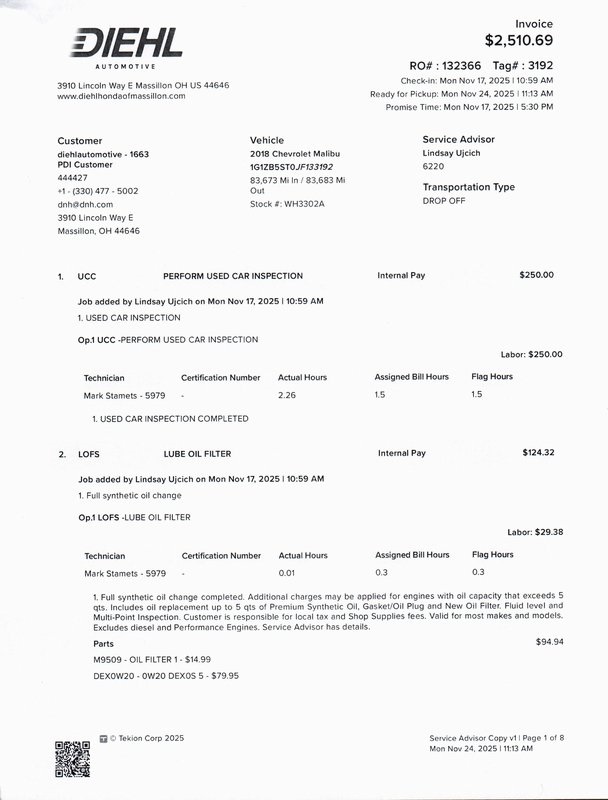 Diehl Automotive utilizes a system that generates market value pricing automatically for new and pre-owned vehicles and may cause errors, inaccuracies, or omissions. Some aftermarket additions or accessories may not be displayed properly. For accuracy, please contact the dealer for real-time, accurate pricing. A documentation fee of $477 applies and is not included in the pricing. Tax, Title, and Tags are also not included and must be paid by the purchaser. Some prices may include manufacturer-to-dealer offers that are not compatible with manufacturer special finance programs and/or lease offers. While great effort is made to ensure the accuracy of the information on this site, errors do occur so please verify information with a customer service rep. This is easily done by calling us or by visiting us at the dealership.