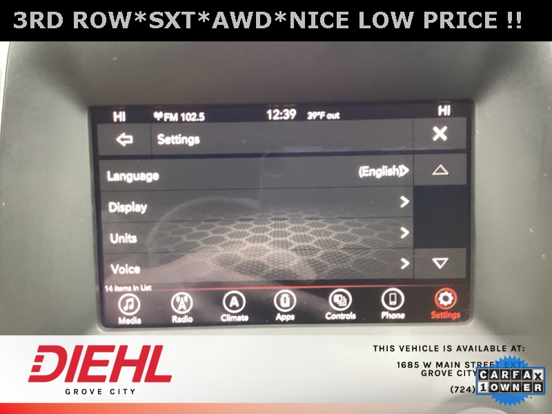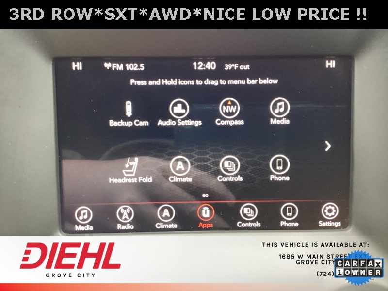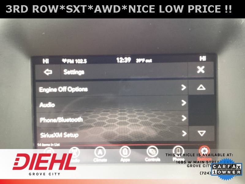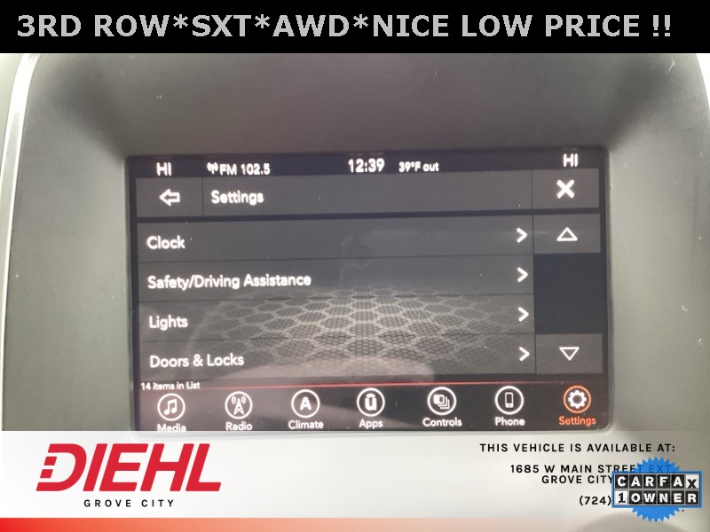*BACK UP CAMERA*, *ALL-WHEEL DRIVE*, AWD, 2nd Row 60/40 Fold & Tumble Seat, 3rd Row Remote Headrest Dumping, 3rd Row Seat, 3rd Row Seating Group, 4-Wheel Disc Brakes, 7-Passenger Seating, ABS brakes, Anti-whiplash front head restraints, Dual front impact airbags, Dual front side impact airbags, Emergency communication system: Roadside Assistance/9-1-1 Call, Front anti-roll bar, Knee airbag, Low tire pressure warning, Occupant sensing airbag, Overhead airbag, Quick Order Package 2BA SXT, Rear anti-roll bar. CARFAX One-Owner. Priced below KBB Fair Purchase Price!