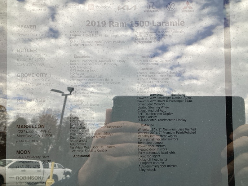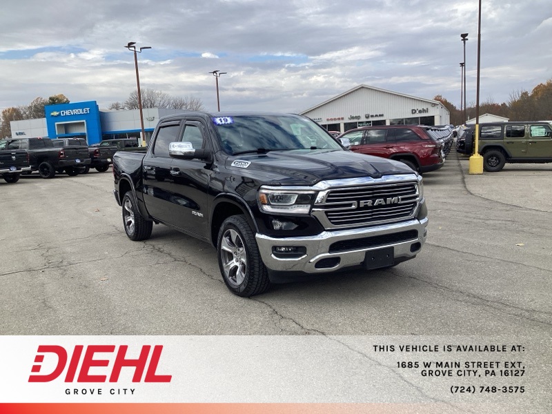 Diamond Black Crystal Pearlcoat 2019 Ram 1500 Laramie 4D Crew Cab 4WD HEMI 5.7L V8 Multi Displacement VVT 8-Speed Automatic