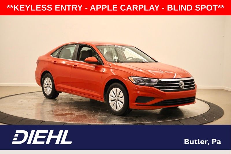 **HABANERO ORANGE**, **BLIND SPOT DETECTION**, **FRONT COLLISION MITIGATION**, **AUTO HEADLIGHTS**, **16" ALLOY WHEELS**, **BACK UP CAMERA**, **6.5" TOUCHSCREEN RADIO**, **REMOTE KEYLESS ENTRY**, Gray Cloth, 4-Wheel Disc Brakes, ABS brakes, Blind Spot Monitor w/Rear Traffic Alert, Brake assist, Driver Assistance Package, Dual front impact airbags, Dual front side impact airbags, Electronic Stability Control, Forward Collision Warning, Front anti-roll bar, Front wheel independent suspension, Heated Side Mirrors, Low tire pressure warning, Occupant sensing airbag, Overhead airbag, Rear anti-roll bar. Recent Arrival! Orange Metallic 2019 Volkswagen Jetta 1.4T S FWD 8-Speed Automatic with Tiptronic 1.4L TSI