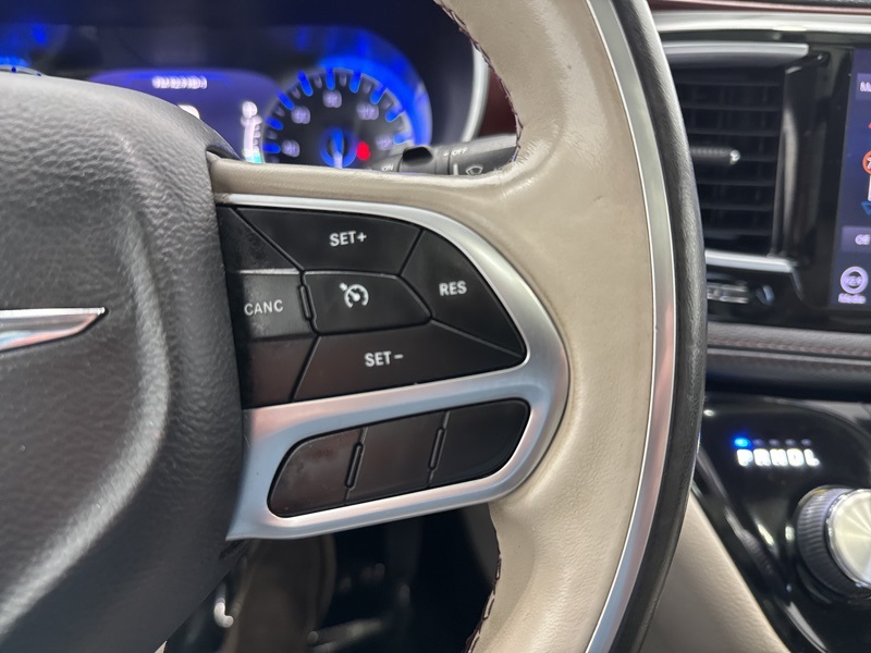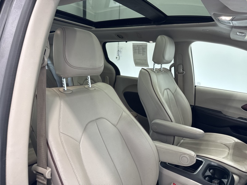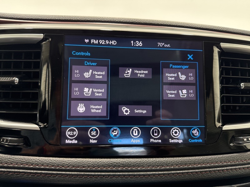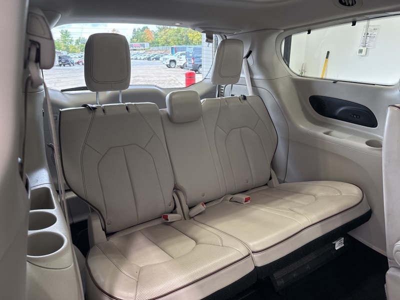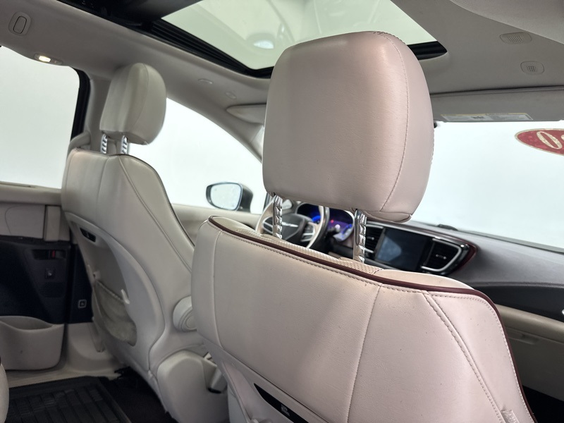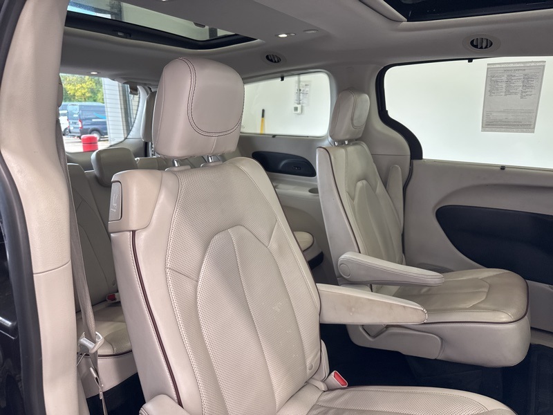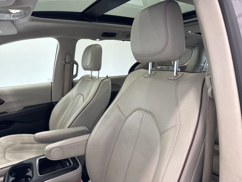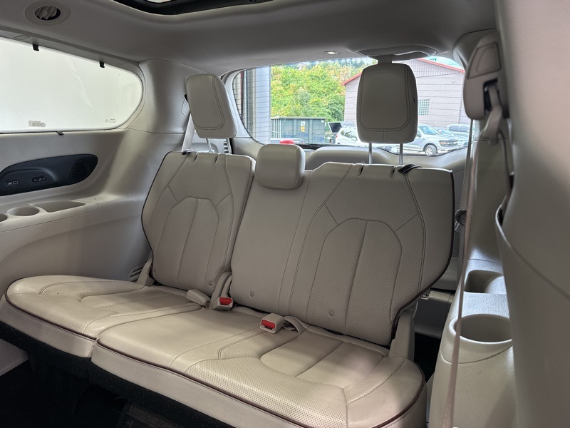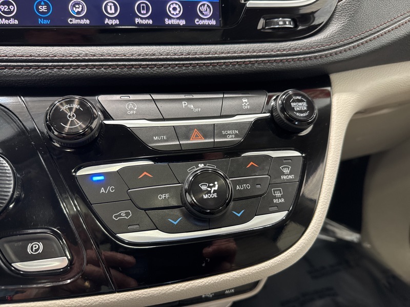 Inside, the Pacifica spoils you with heated and ventilated front seats, heated second-row seats, driver memory settings, and a Uconnect 4 NAV system with an 8.4-inch touchscreen that pairs seamlessly with Apple CarPlay, Android Auto, and even includes a 4G Wi-Fi hotspot. Add in premium touches like hands-free sliding doors and liftgate, blind-spot monitoring, and a built-in vacuum to handle crushed goldfish crackers, and suddenly you realize this isn’t a minivan—it’s a mobile life upgrade.
