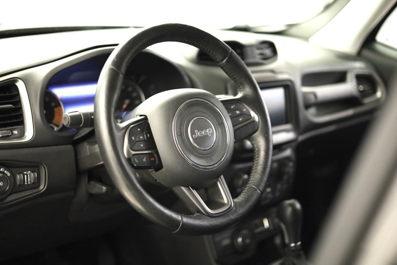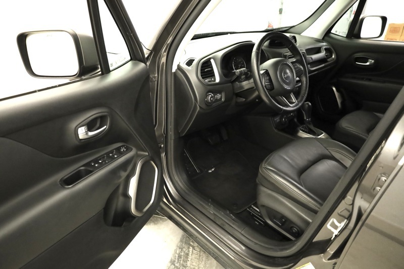 **ALL WHEEL DRIVE**, **BLUETOOTH HANDS FREE PHONE**, **LEATHER**, **BACK-UP CAMERA**, **PAINTED BLACK ROOF**, **18" PAINTED ALUMINUM WHEELS**, **AUTOMATIC HEADLIGHTS**, **CLEAN CARFAX**, **FACTORY REMOTE START**, **HEATED FRONT SEATS**, **HEATED STEERING WHEEL**, **APPLE CARPLAY / ANDROID AUTO**, 3.734 Final Drive Ratio, 4-Wheel Disc Brakes, 6 Speakers, ABS brakes, Air Conditioning, Alloy wheels, AM/FM radio: SiriusXM, Anti-whiplash front head restraints, Apple CarPlay/Android Auto, Auto-dimming Rear-View mirror, Automatic temperature control, Brake assist, Compass, Delay-off headlights, Driver door bin, Driver vanity mirror, Dual front impact airbags, Dual front side impact airbags, Electronic Stability Control, Emergency communication system, Four wheel independent suspension, Front anti-roll bar, Front Bucket Seats, Front Center Armrest, Front dual zone A/C, Front fog lights, Front reading lights, Fully automatic headlights, Heated door mirrors, Heated front seats, Heated steering wheel, Illuminated entry, Knee airbag, Leather Shift Knob, Leather steering wheel, Leather Trimmed Bucket Seats, Low tire pressure warning, Normal Duty Suspension, Occupant sensing airbag, Outside temperature display, Overhead airbag, Panic alarm, ParkView Rear Back-Up Camera, Passenger door bin, Passenger vanity mirror, Power door mirrors, Power driver seat, Power steering, Power windows, Quick Order Package 22D, Radio data system, Radio: Uconnect 4 w/7" Display, Rain sensing wipers, Rear anti-roll bar, Rear seat center armrest, Rear window defroster, Rear window wiper, Remote keyless entry, Roof rack: rails only, Speed control, Split folding rear seat, Spoiler, Steering wheel mounted audio controls, Tachometer, Telescoping steering wheel, Tilt steering wheel, Traction control, Trip computer, Turn signal indicator mirrors, Variably intermittent wipers, Voltmeter, Wheels: 18" x 7.0" Painted Aluminum. Recent Arrival! Clean CARFAX. Granite Crystal Metallic Clearcoat 2020 Jeep Renegade Limited 4WD 9-Speed 948TE Automatic 1.3L I4