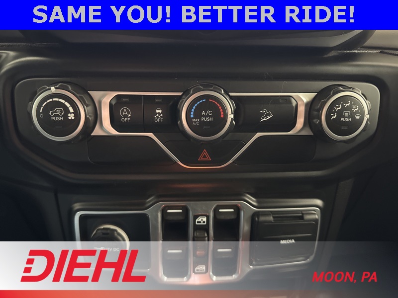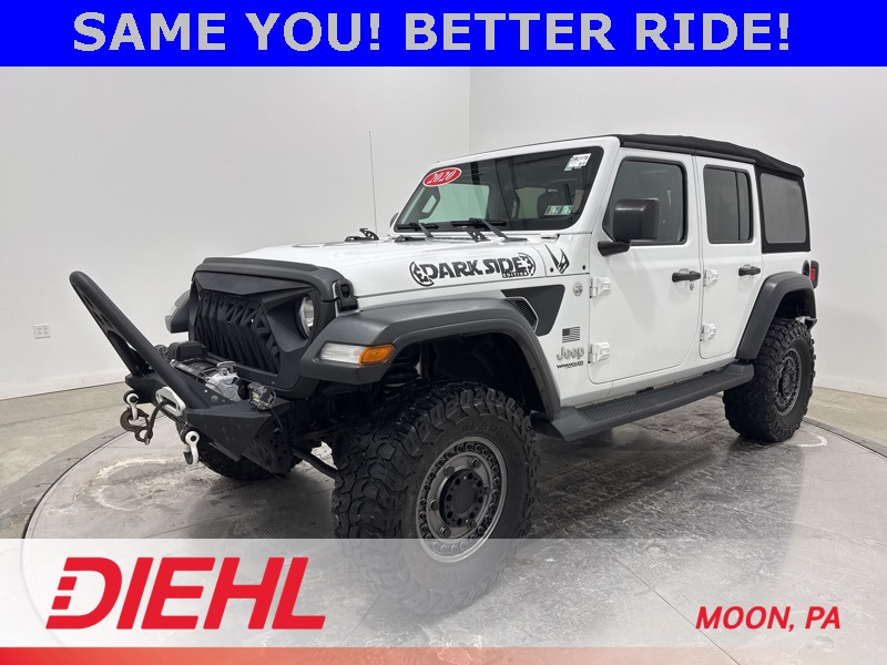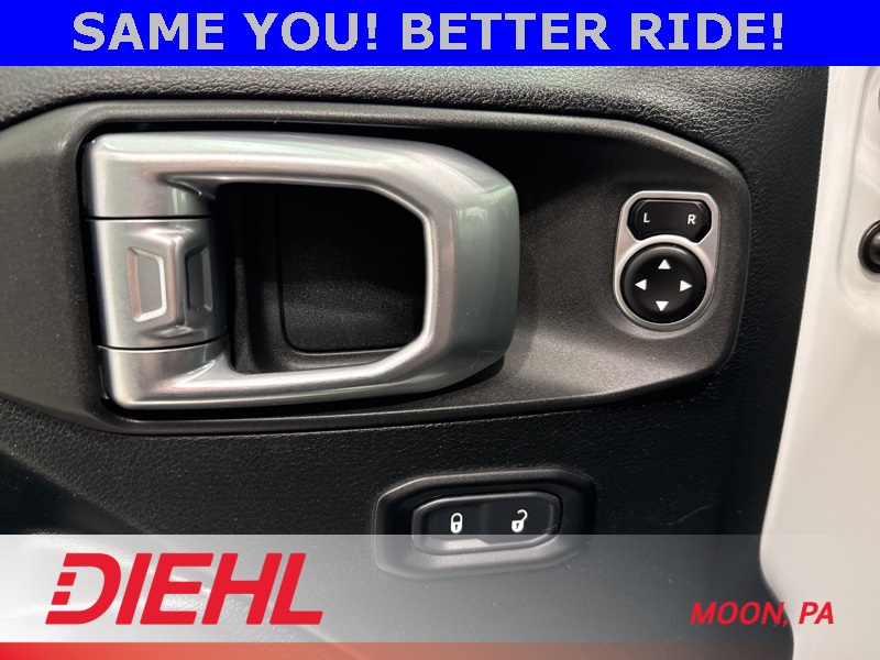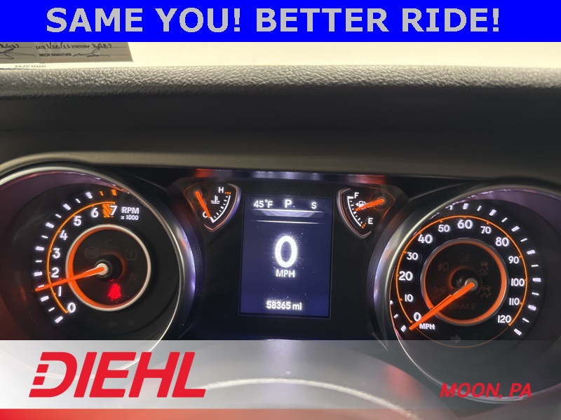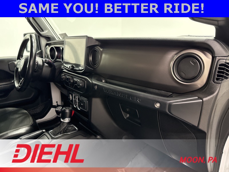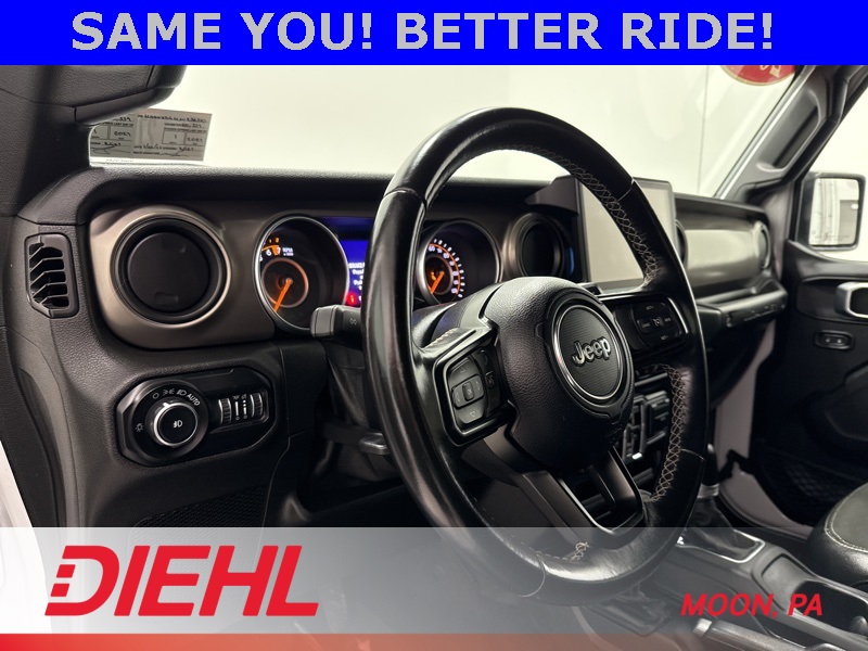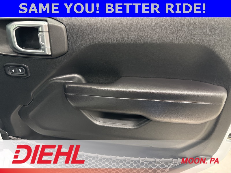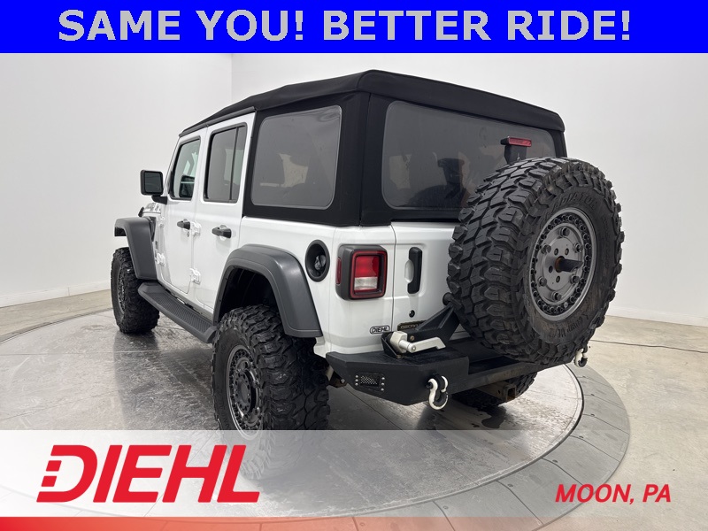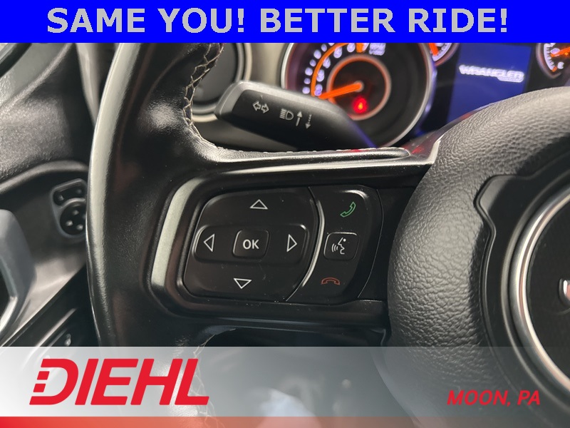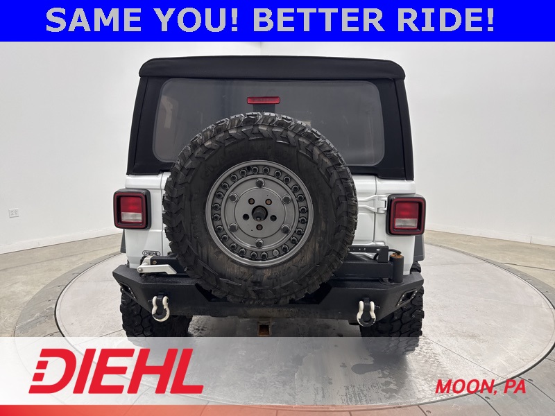 Powered by a 3.6L V6 paired with an 8 speed automatic transmission and part time four wheel drive, this Wrangler brings strong acceleration, confident handling, and trail ready capability. Heavy duty suspension components, skid plates, four wheel disc brakes with ABS, traction control, and stability control help keep every drive steady whether you're navigating back roads or heading off the grid. Fog lamps, tow hooks, aluminum wheels, and a convertible soft top round out the unmistakable Wrangler look.