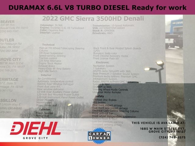 Cayenne Red 2022 GMC Sierra 3500HD Denali 4D Crew Cab 4WD Duramax 6.6L V8 Turbodiesel 10-Speed Automatic