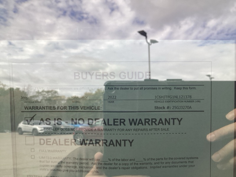 *Confirm any warranty information with dealer before purchase.Roadside warranty