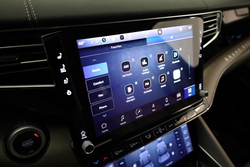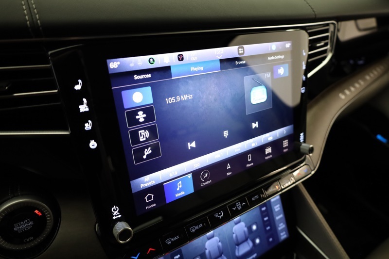 **ALL WHEEL DRIVE**, **BLUETOOTH HANDS FREE PHONE**, **LEATHER**, **BACK-UP CAMERA**, **HEATED AND COOLED FRONT SEATS**, **POWER LIFTGATE**, **APPLE CARPLAY / ANDROID AUTO**, **FACTORY NAVIGATION**, **HEATED STEERING WHEEL**, **HEATED SECOND ROW**, **MCINTTOSH PREMIUM SOUND**, **PANORAMIC MOONROOF**, **THREE ROW SEATING **, **SECOND ROW BUCKETS**, **POWER RUNNING BOARDS**, **BLIND SPOT DETECTION**, **MASSAGE SEATS**, **BLIND SPOT DETECTION**, 19 Speakers, 3.92 Rear Axle Ratio, 3rd row seats: bench, 4-Wheel Disc Brakes, ABS brakes, Adjustable pedals, Air Conditioning, Alloy wheels, AM/FM radio: SiriusXM with 360L, Anti-whiplash front head restraints, Audio memory, Auto High-beam Headlights, Auto-dimming door mirrors, Auto-dimming Rear-View mirror, Auto-leveling suspension, Automatic temperature control, Body Color Roof, Brake assist, Bumpers: body-color, Compass, Delay-off headlights, Driver door bin, Driver vanity mirror, Driver's Seat Mounted Armrest, Dual front impact airbags, Dual front side impact airbags, Electronic Stability Control, Four wheel independent suspension, Front anti-roll bar, Front Bucket Seats, Front Center Armrest w/Storage, Front dual zone A/C, Front fog lights, Front Passenger Interactive Display, Front reading lights, Fully automatic headlights, Garage door transmitter, Genuine wood console insert, Genuine wood dashboard insert, Genuine wood door panel insert, Heads-Up Display, Heated door mirrors, Heated front seats, Heated rear seats, Heated steering wheel, Illuminated entry, Knee airbag, Leather steering wheel, Leather Trimmed Bucket Seats, Low tire pressure warning, Memory seat, Navigation System, Normal Duty Suspension, Occupant sensing airbag, Outside temperature display, Overhead airbag, Overhead console, Panic alarm, Passenger door bin, Passenger seat mounted armrest, Passenger vanity mirror, Pedal memory, Power adjustable front head restraints, Power door mirrors, Power driver seat, Power Liftgate, Power moonroof, Power passenger seat, Power steering, Power windows, Quick Order Package 23S, Radio data system, Radio: Uconnect 5 Nav w/12.0" Display, Rain sensing wipers, Rear air conditioning, Rear anti-roll bar, Rear dual zone A/C, Rear reading lights, Rear seat center armrest, Rear window defroster, Rear window wiper, Reclining 3rd row seat, Remote keyless entry, Security system, Speed control, Speed-sensing steering, Speed-Sensitive Wipers, Split folding rear seat, Steering wheel memory, Steering wheel mounted audio controls, Tachometer, Telescoping steering wheel, Tilt steering wheel, Traction control, Trip computer, Turn signal indicator mirrors, Variably intermittent wipers, Ventilated front seats, Voltmeter, Wheels: 20" x 9.0" Premium 3 Aluminum. CARFAX One-Owner. Certified. Certified Pre-Owned Gold Details: