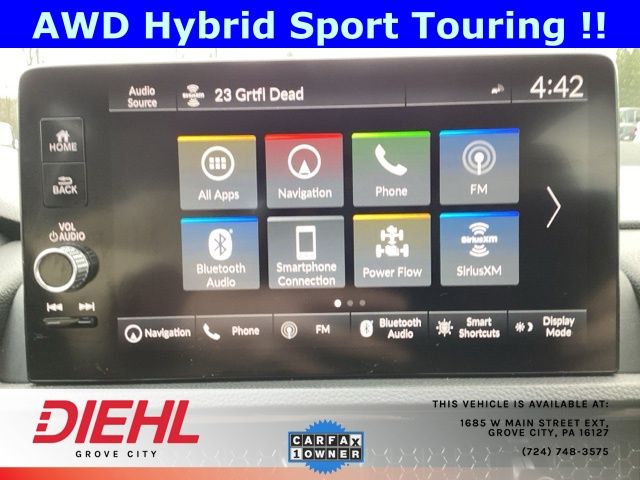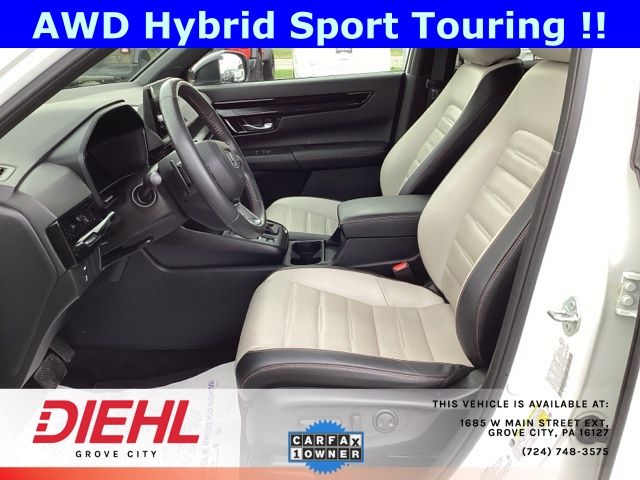 Clean CARFAX. CARFAX One-Owner. Platinum White Pearl 2023 Honda CR-V Hybrid Sport Touring AWD eCVT 2.0L I4 DOHC 16V 40/34 City/Highway MPG