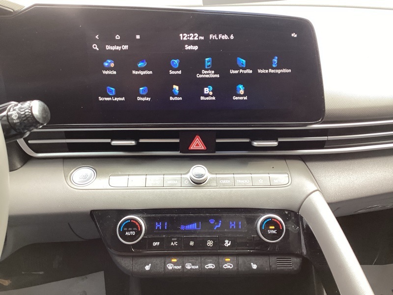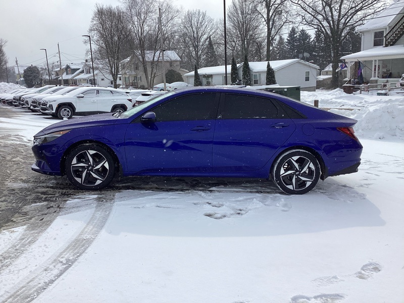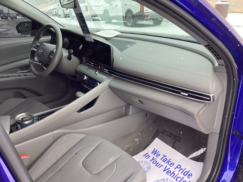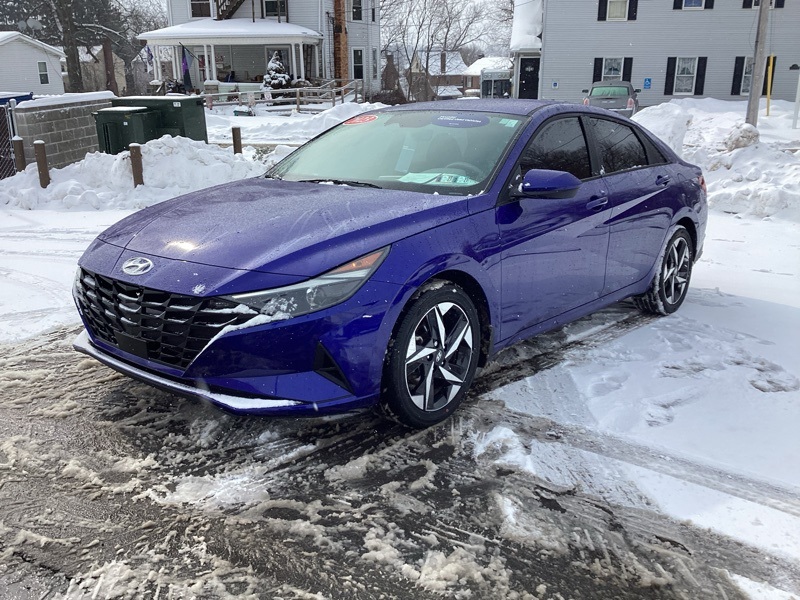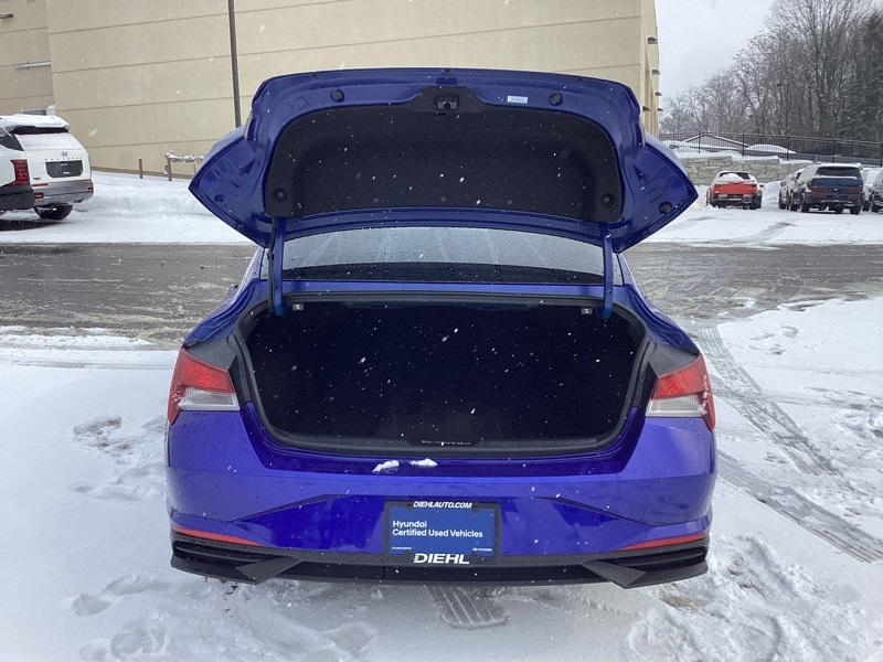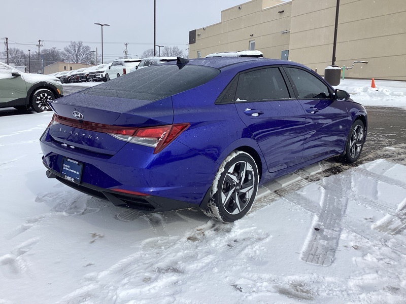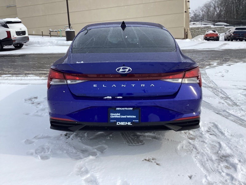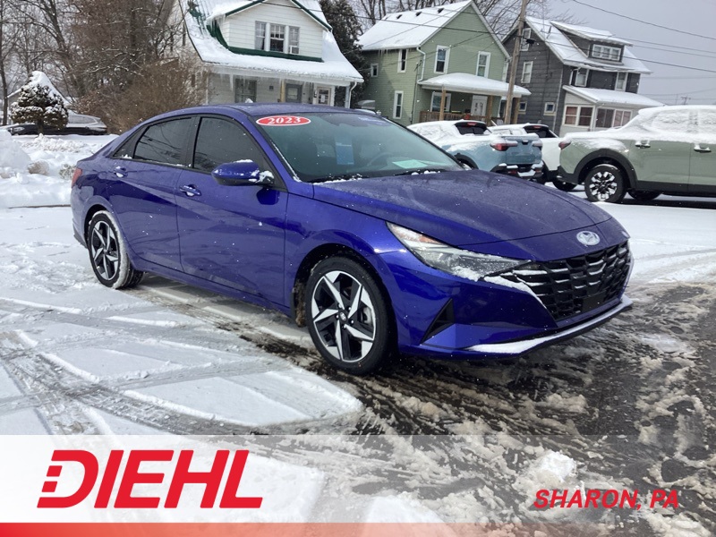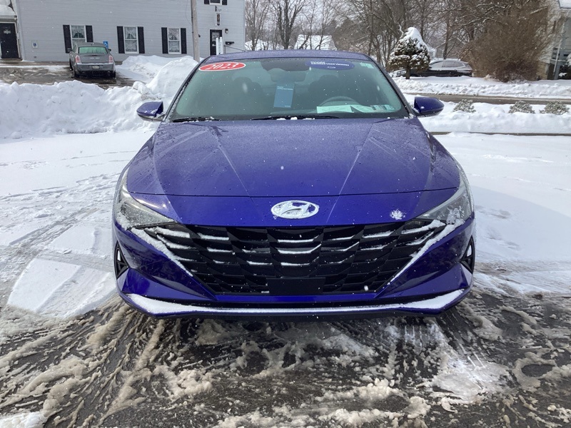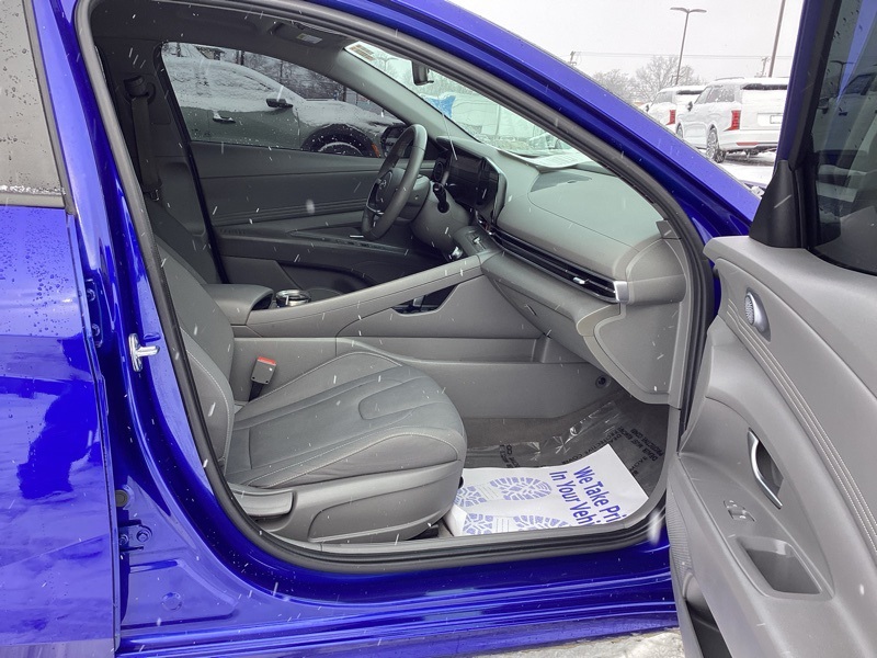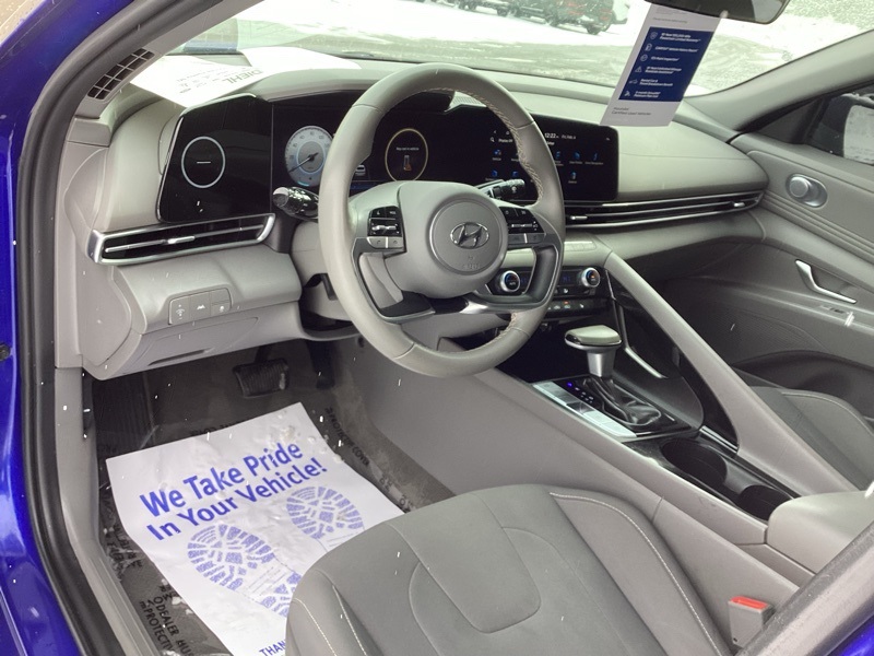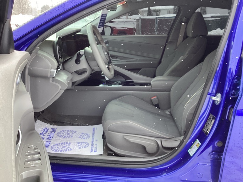 **CERTIFIED PRE OWNED**, 16" x 6.5J Alloy Wheels, 2nd Row USB Charge Port, 4-Wheel Disc Brakes, 6 Speakers, ABS brakes, Air Conditioning, Alloy wheels, AM/FM radio: SiriusXM, Apple CarPlay & Android Auto, Auto High-beam Headlights, Automatic temperature control, Brake assist, Bumpers: body-color, Carpeted Floor Mats, Cloth Seat Trim, Convenience Package, Delay-off headlights, Driver door bin, Driver vanity mirror, Dual front impact airbags, Dual front side impact airbags, Electronic Parking Brake, Electronic Stability Control, Emergency communication system: Blue Link Connected Car Service (3-year complimentary subscription), Exterior Parking Camera Rear, Forward Collision Avoidance Assist, Front anti-roll bar, Front Bucket Seats, Front Center Armrest, Front dual zone A/C, Front reading lights, Front wheel independent suspension, Full 10.25" LCD TFT Cluster, Fully automatic headlights, Heated Front Seats, Heated Outside Mirrors, Illuminated entry, Leather-Wrapped Steering Wheel, LED Interior Lights, Low tire pressure warning, Mudguards, Occupant sensing airbag, Option Group 02, Outside temperature display, Overhead airbag, Overhead console, Panic alarm, Passenger door bin, Passenger vanity mirror, Power door mirrors, Power steering, Power windows, Radio: AM/FM/HD/SiriusXM Audio System, Radio: AM/FM/HD/SiriusXM Display Audio, Rear window defroster, Remote keyless entry, Reversible Cargo Tray, Security system, Smart Cruise Control w/Stop & Go, Speed control, Speed-sensing steering, Steering wheel mounted audio controls, Tachometer, Telescoping steering wheel, Tilt steering wheel, Traction control, Trip computer, Variably intermittent wipers, Wheels: 17" x 7.0J Machine Finish Alloy, Wireless Charging Pad. Certified. Intense Blue 2023 Hyundai Elantra SEL FWD CVT I4