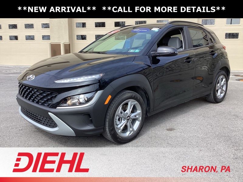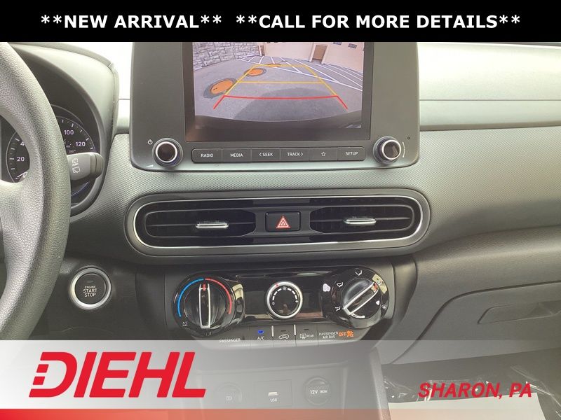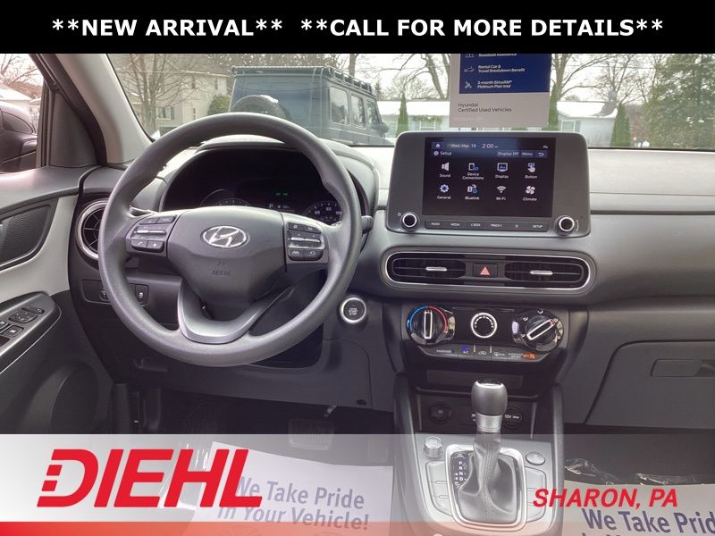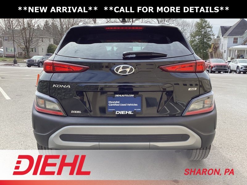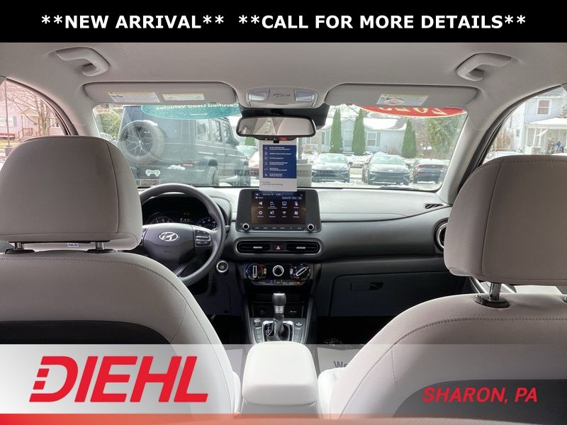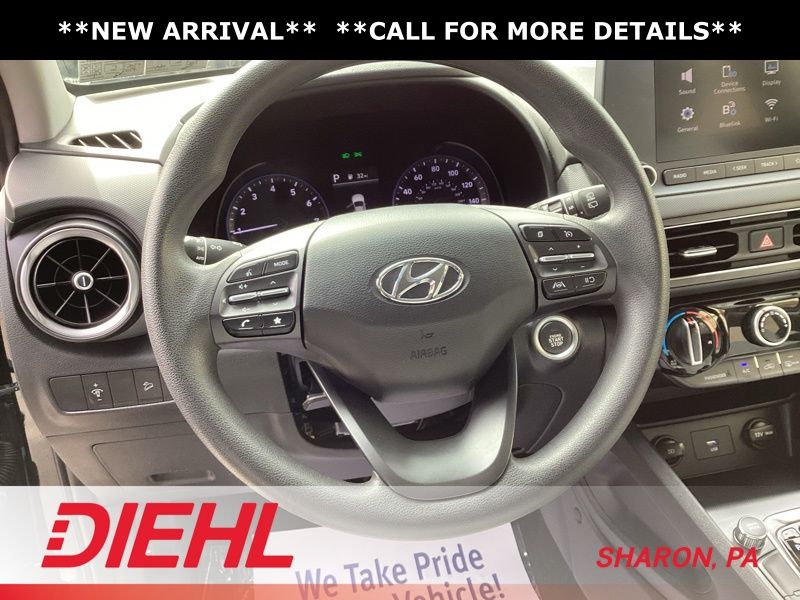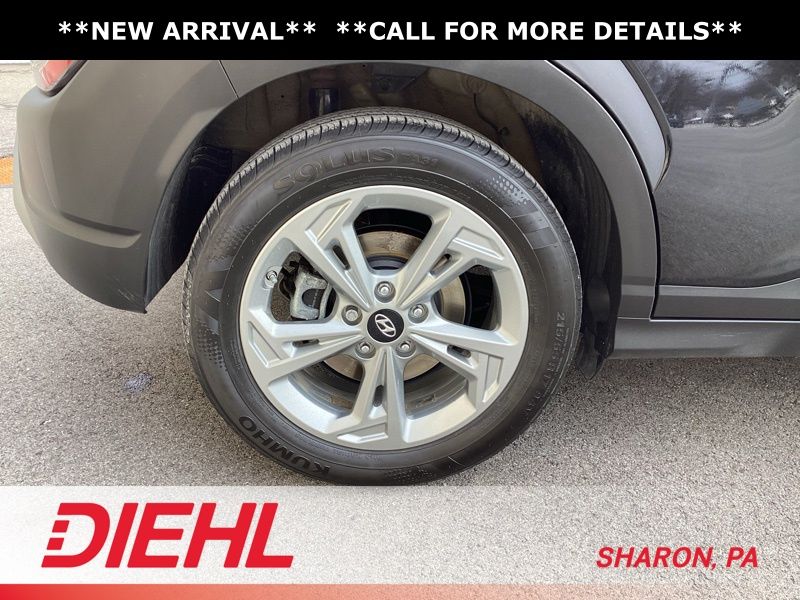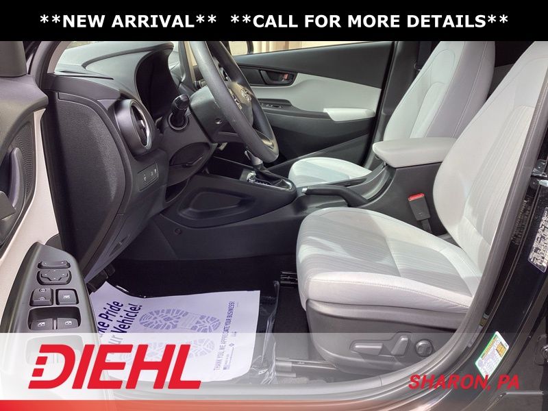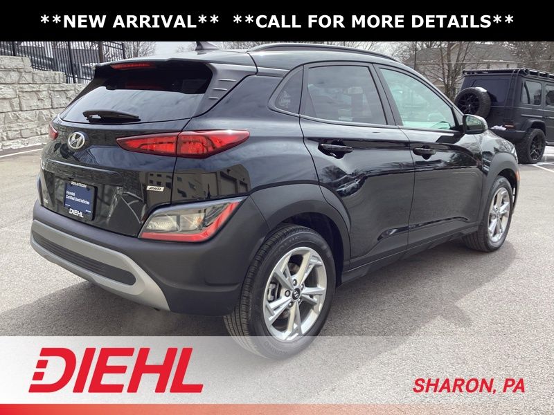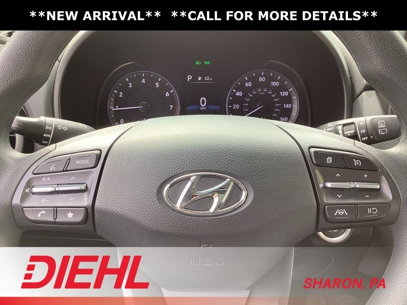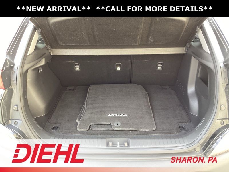 17" x 7.0J Alloy Wheels, 4-Wheel Disc Brakes, 5.715 Axle Ratio, 6 Speakers, ABS brakes, Air Conditioning, Alloy wheels, AM/FM radio: SiriusXM, Apple CarPlay & Android Auto, Brake assist, Bumpers: body-color, Cargo Blocks, Cargo Net, Cargo Package, Cargo Tray, Carpeted Floor Mats, Cloth Seat Trim, Delay-off headlights, Driver door bin, Driver vanity mirror, Dual front impact airbags, Dual front side impact airbags, Electronic Stability Control, Emergency communication system: Blue Link Connected Car Service (3-year complimentary subscription), Exterior Parking Camera Rear, First Aid Kit, Four wheel independent suspension, Front anti-roll bar, Front Bucket Seats, Front Center Armrest, Front reading lights, Fully automatic headlights, Heated door mirrors, Illuminated entry, Low tire pressure warning, Occupant sensing airbag, Option Group 01, Outside temperature display, Overhead airbag, Overhead console, Panic alarm, Passenger door bin, Passenger vanity mirror, Power door mirrors, Power driver seat, Power steering, Power windows, Radio: AM/FM/HD/SiriusXM Audio System, Rear anti-roll bar, Rear seat center armrest, Rear window defroster, Rear window wiper, Remote keyless entry, Security system, Speed control, Speed-sensing steering, Split folding rear seat, Spoiler, Steering wheel mounted audio controls, Tachometer, Telescoping steering wheel, Tilt steering wheel, Traction control, Trip computer, Turn signal indicator mirrors, Variably intermittent wipers, Wheel Locks. Certified. Abyss Black Pearl 2023 Hyundai Kona SEL AWD CVT 2.0L I4 DOHC Dual CVVT