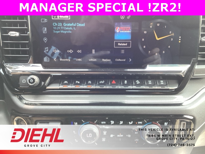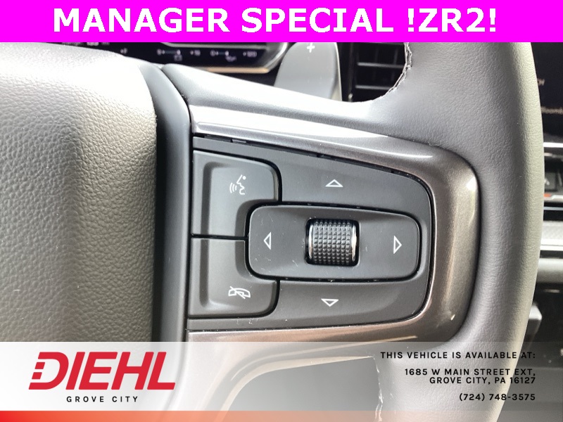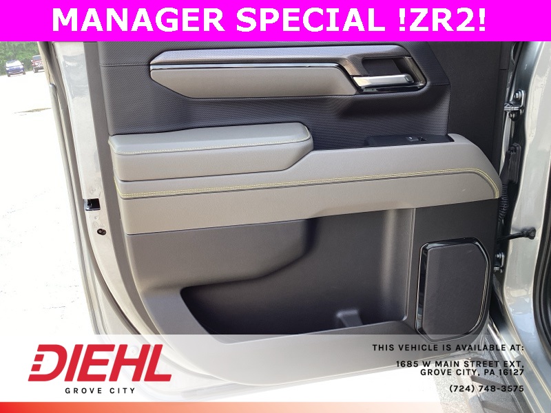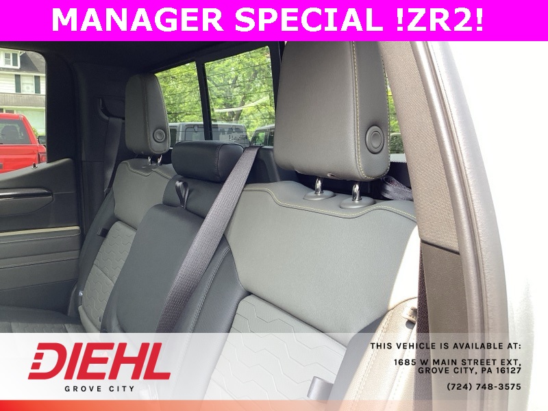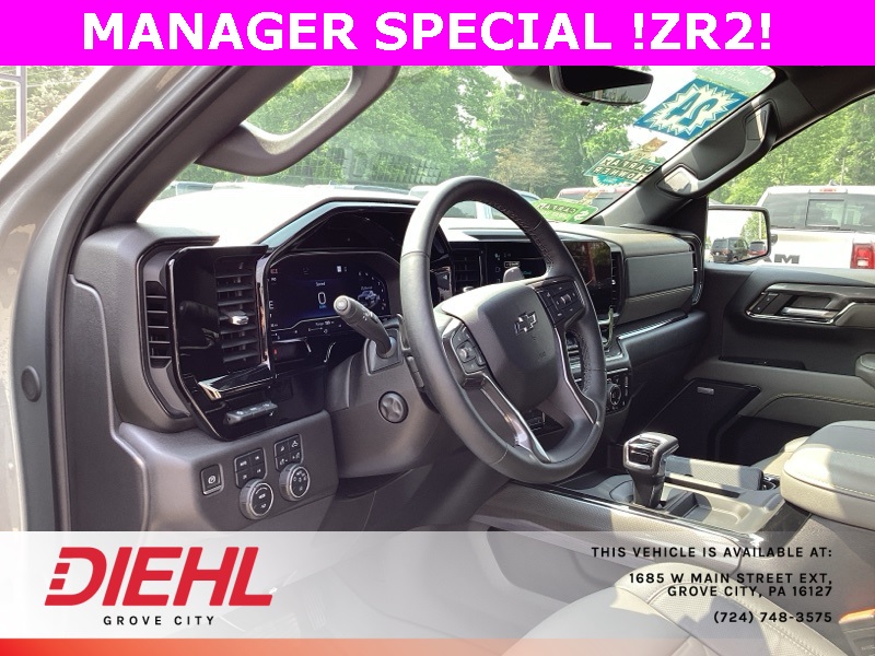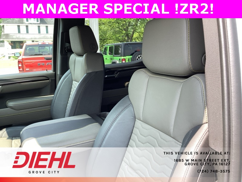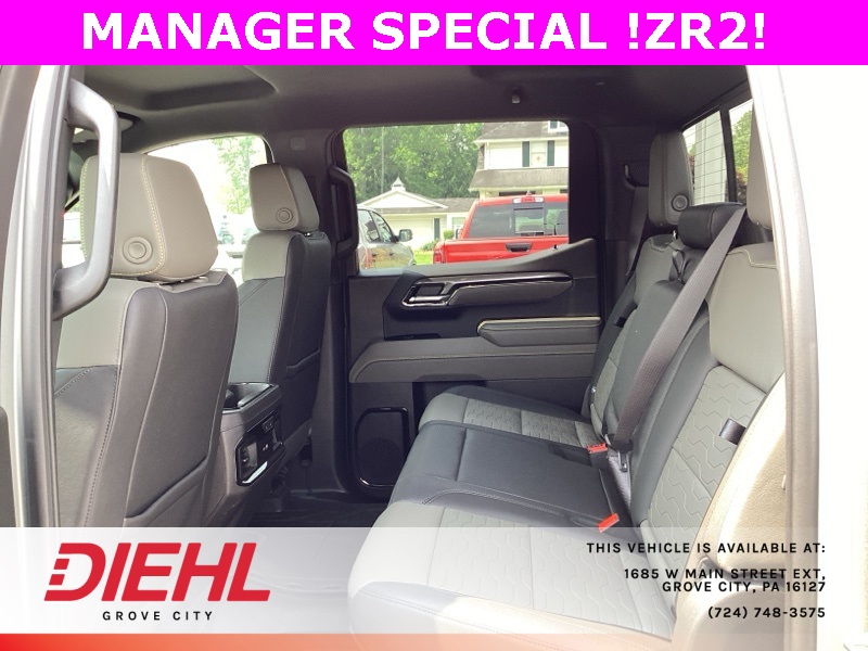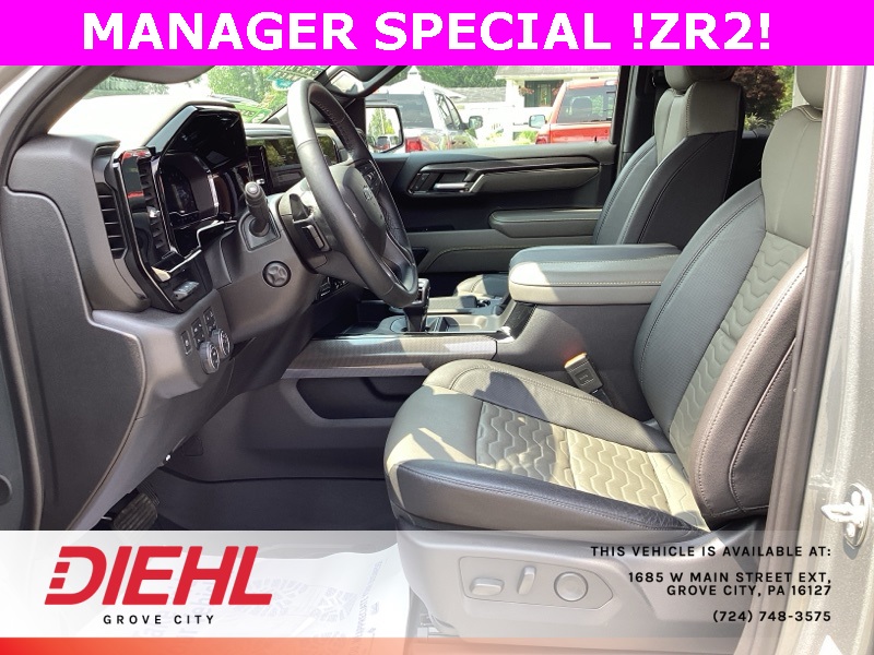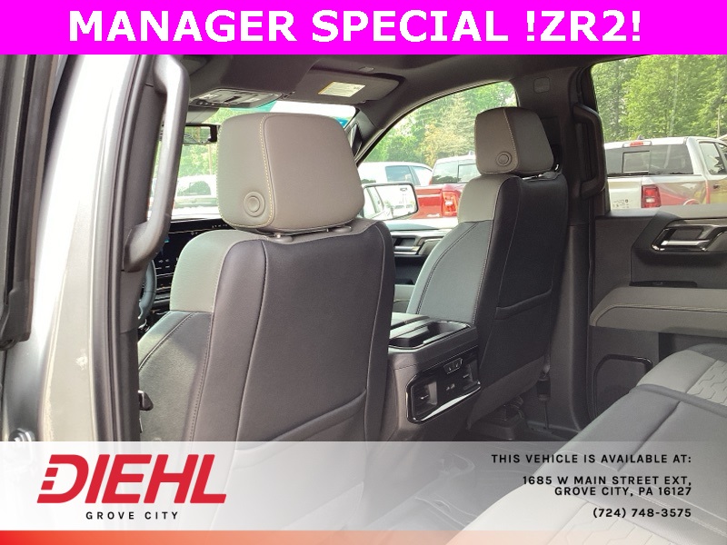 10-Speed Automatic, 4WD, Jet Black/Graystone Leather, 10-Way Power Driver Seat w/Lumbar, 10-Way Power Passenger Seat Adjuster w/Lumbar, 12.3" Multicolor Reconfigurable Digital Display, 120-Volt Bed Mounted Power Outlet, 120-Volt Interior Power Outlet, 15" Diagonal Multicolor Head-Up Display, 2 USB Data Ports, 2nd Row Heated Outboard Seats, Adaptive Cruise Control, All-Weather Floor Liner (LPO), Auto-Dimming Inside Rear-View Mirror, Bed View Camera, Bluetooth® For Phone, Chevrolet Connected Access Capable, Chevytec Spray-On Black Bedliner, Color-Keyed Carpeting Floor Covering, Deep-Tinted Glass, Driver Memory, Dual Rear USB Ports (Charge Only), Electric Rear-Window Defogger, Electrical Steering Column Lock, Electronic Cruise Control, EZ Lift Power Lock & Release Tailgate, Floor Mounted Center Console, Front LED Fog Lamps, Front Rain-Sensing Wipers, HD Surround Vision, Heated Driver & Front Outboard Passenger Seats, Heated Steering Wheel, Heavy-Duty Air Filter, High Gloss Black Mirror Caps, Hill Descent Control, Hitch Guidance, Hitch Guidance w/Hitch View, In-Vehicle Trailering System App, Integrated Trailer Brake Controller, Keyless Open & Start, LED Cargo Area Lighting, Manual Tilt/Telescoping Steering Column, OnStar & Chevrolet Connected Services Capable, Outside Heated Power-Adjustable Mirrors, Performance Red Recovery Hooks, Perimeter Lighting, Power Front Passenger Windows w/Express Up/Down, Power Front Windows w/Driver Express Up/Down, Power Rear Windows w/Express Down, Power Sliding Rear Window w/Rear Defogger, Power Tilt & Telescoping Steering Column, Preferred Equipment Group 3LT, Rear Camera Mirror, Rear Cross Traffic Braking, Rear Park Assist, Rear Pedestrian Alert, Rear Wheelhouse Liners, Remote Vehicle Starter System, Safety Alert Seat, SiriusXM w/360L, Standard Tailgate, Steering Wheel Audio Controls, Technology Package, Theft Deterrent System (Unauthorized Entry), Trailer Camera Provisions, Trailer Side Blind Zone Alert, Trailering Package, Universal Home Remote, Up-Level Rear Seat w/Storage Package, Ventilated Driver & Front Passenger Seats, Wi-Fi Hot Spot Capable, Wrapped Steering Wheel, ZR2 Suspension Package. CARFAX One-Owner. Clean CARFAX. Priced below KBB Fair Purchase Price!Sterling Gray Metallic 2024 Chevrolet Silverado 1500 ZR2 4D Crew Cab 4WD EcoTec3 6.2L V8 10-Speed AutomaticOdometer is 3018 miles below market average!