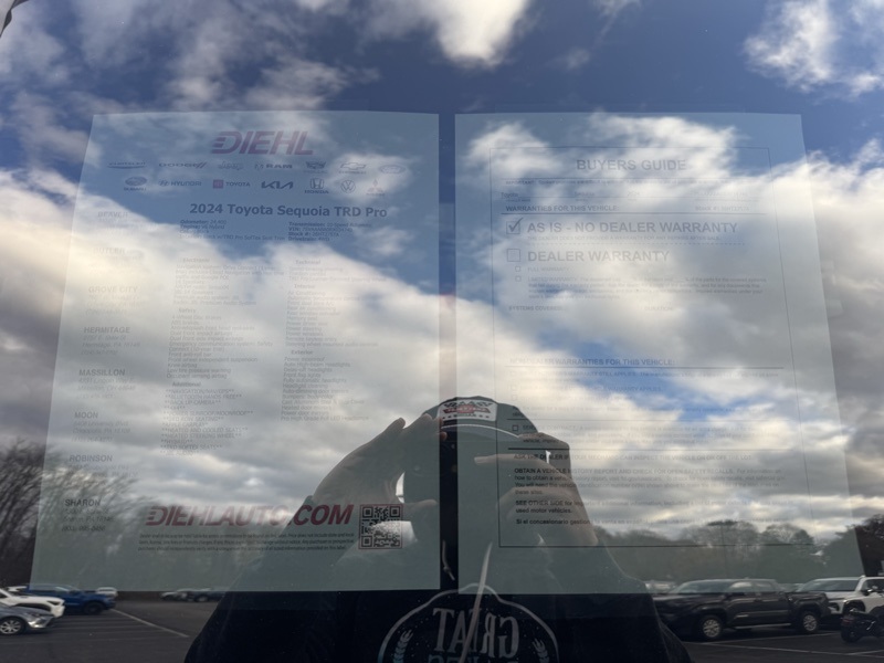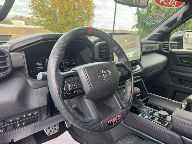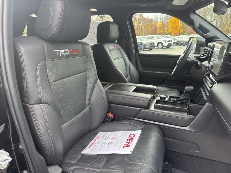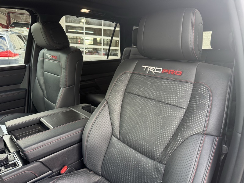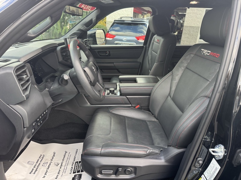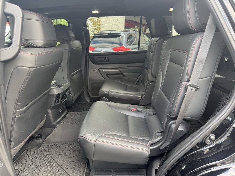 **TOYOTA CERTIFIED**, **3RD ROW SEATING**, **PANO SUNROOF**, **360 SURROUND CAMERA**, **ANDROID AUTO**, **APPLE CARPLAY*, **NAVIGATION/NAV/GPS**, **BLUETOOTH HANDS FREE**, **BACK UP CAMERA**, **4X4**, **POWER SUNROOF/MOONROOF**, **HEATED AND COOLED SEATS**, **HEATED STEERING WHEEL**, **HYBRID**, **TRD SOFTEX SEATS**, **JBL AUDIO**, Sequoia TRD Pro, V6 Hybrid, 10-Speed Automatic, 4WD, Black w/TRD Pro SofTex Seat Trim, 4-Wheel Disc Brakes, ABS brakes, Apple CarPlay/Android Auto, Auto High-beam Headlights, Automatic temperature control, Delay-off headlights, Exterior Parking Camera Rear, Front dual zone A/C, Front fog lights, Front wheel independent suspension, Fully automatic headlights, Headlight cleaning, Heated & Ventilated Front Seats, Low tire pressure warning, Memory seat, Navigation system: Drive Connect (1 year trial) includes Cloud Navigation with real time traffic and Google POI, Power driver seat, Power moonroof, Power passenger seat, Radio: JBL Premium Audio System, Remote keyless entry, Steering wheel mounted audio controls, Telescoping steering wheel, Tilt steering wheel, Tow Technology Package, TRD Pro Leather-Trimmed Steering Wheel, TRD Pro SofTex Seat Trim, Ventilated front seats, Wheels: 20" Machined-Finish Alloy.