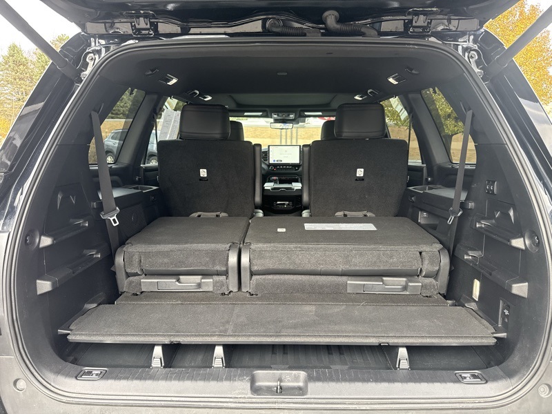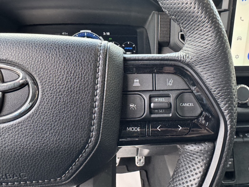Midnight Black Metallic 2024 Toyota Sequoia TRD Pro 4D Sport Utility 4WD V6 Hybrid 10-Speed Automatic Tow Technology Package, Sequoia TRD Pro, Toyota Gold Certified Certified, V6 Hybrid, 10-Speed Automatic, 4WD, Black w/TRD Pro SofTex Seat Trim, 4-Wheel Disc Brakes, ABS brakes, Apple CarPlay/Android Auto, Auto High-beam Headlights, Automatic temperature control, Delay-off headlights, Exterior Parking Camera Rear, Front dual zone A/C, Front fog lights, Front wheel independent suspension, Fully automatic headlights, Headlight cleaning, Heated & Ventilated Front Seats, Low tire pressure warning, Memory seat, Navigation system: Drive Connect (1 year trial) includes Cloud Navigation with real time traffic and Google POI, Power driver seat, Power moonroof, Power passenger seat, Radio: JBL Premium Audio System, Remote keyless entry, Steering wheel mounted audio controls, Telescoping steering wheel, Tilt steering wheel, TRD Pro Leather-Trimmed Steering Wheel, TRD Pro SofTex Seat Trim, Ventilated front seats, Wheels: 20" Machined-Finish Alloy, 14 Speakers, 3.31 Axle Ratio, 3rd row seats: split-bench, Air Conditioning, Alloy wheels, AM/FM radio: SiriusXM, Anti-whiplash front head restraints, Auto-dimming door mirrors, Auto-dimming Rear-View mirror, Brake assist, Bumpers: body-color, Cast Aluminum Step & Step Cover, Compass, Driver door bin, Driver vanity mirror, Dual front impact airbags, Dual front side impact airbags, Electronic Stability Control, Emergency communication system: Safety Connect (10-year trial), Front anti-roll bar, Front Bucket Seats, Front Center Armrest w/Storage, Front reading lights, Garage door transmitter: HomeLink, Heated door mirrors, Heated front seats, Heated steering wheel, Illuminated entry, JBL 14 Speakers, Knee airbag, Leather Shift Knob, Leather steering wheel, Occupant sensing airbag, Outside temperature display, Overhead airbag, Overhead console, Panic alarm, Passenger door bin, Passenger vanity mirror, Power door mirrors, Power steering, Power windo