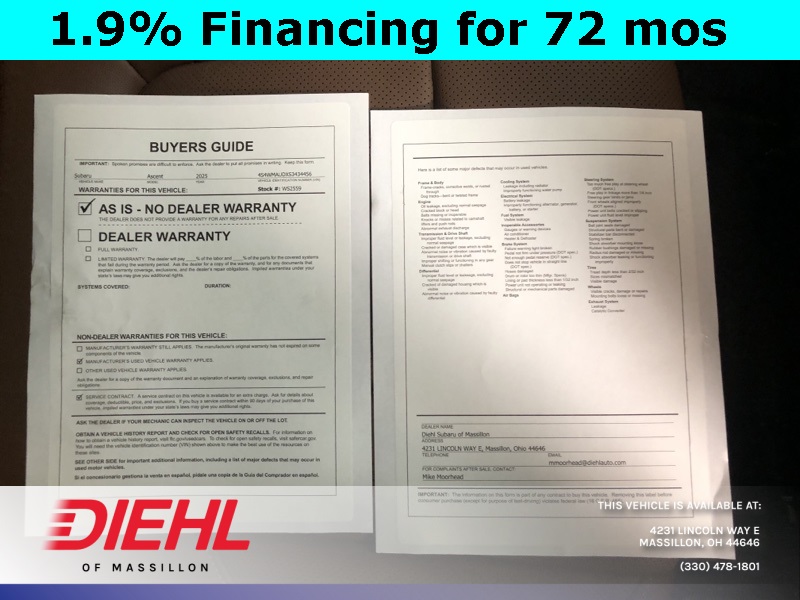 KBB Fair Market Range High: $47,230 KBB Fair Market Range Low: $44,230 Priced below KBB Fair Purchase Price! Odometer is 3648 miles below market average! 2025 Subaru Ascent Autumn Green Metallic Lineartronic CVT 2.4L 4-Cylinder DOHC 16V AWD Touring 19/25 City/Highway MPG
