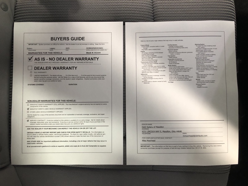 Auto-Dimming Mirror w/Compass & HomeLink, Blind Spot Detection w/Rear Cross-Traffic Alert, BSD w/RCTA & Keyless & Fog Lts & Moonroof & Nav, Cargo Tray, Keyless Access w/Push Button Start, LED Fog Lights, Popular Package #1A, Power Moonroof, Radio: Subaru 11.6" Multimedia System w/Navigation, Rear Bumper Applique. Recent Arrival! Certified. 2025 Subaru Legacy Premium Clean CARFAX.